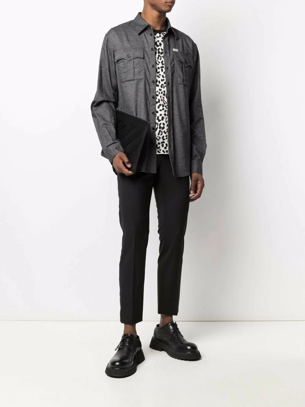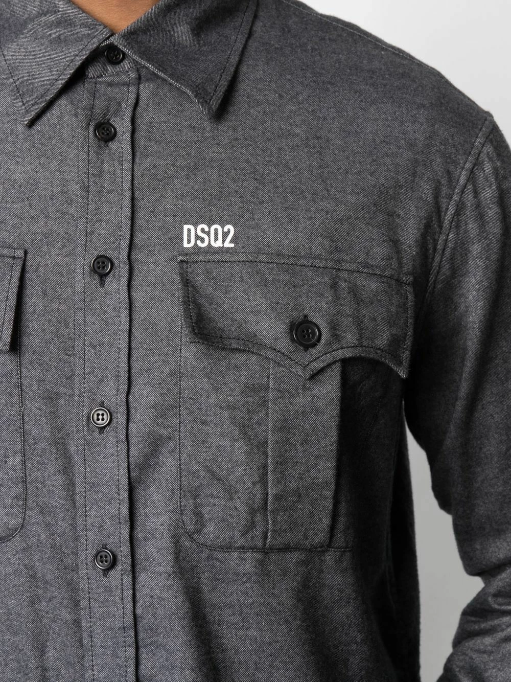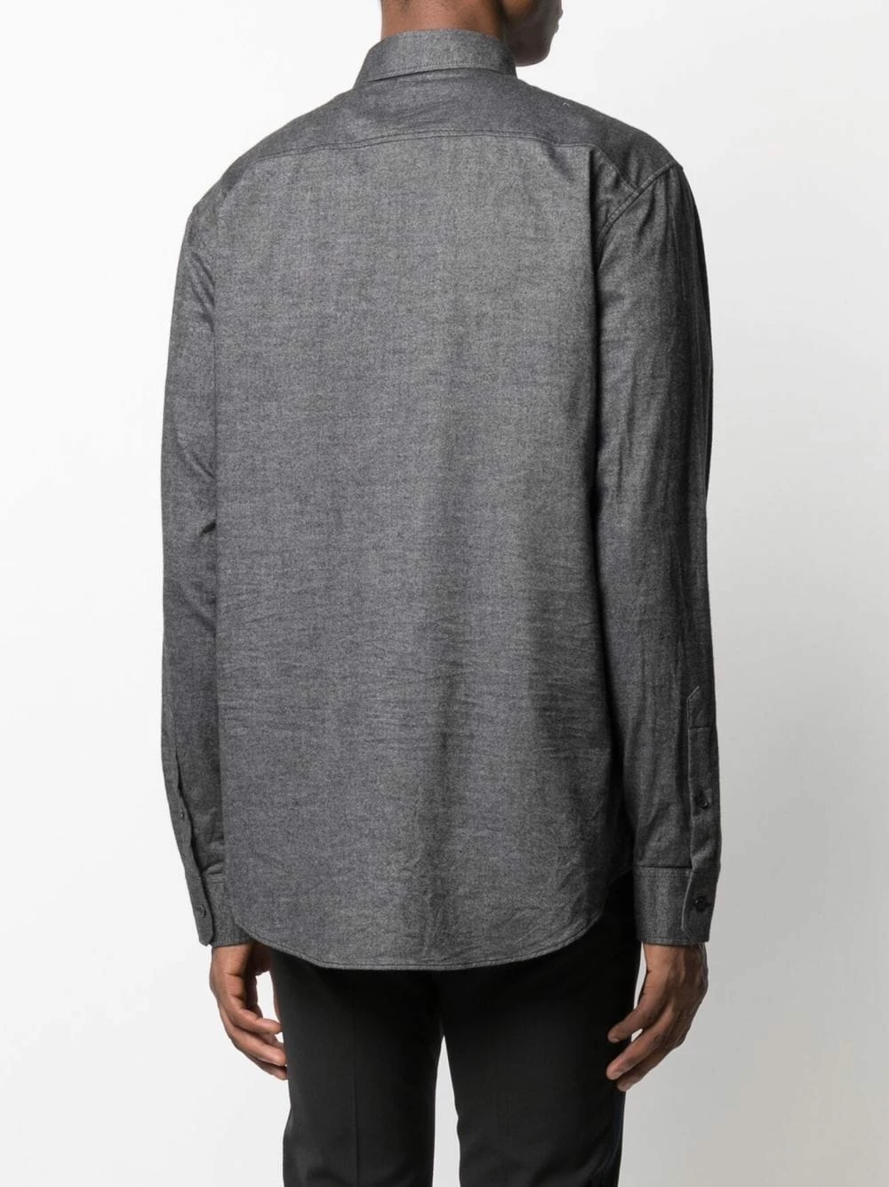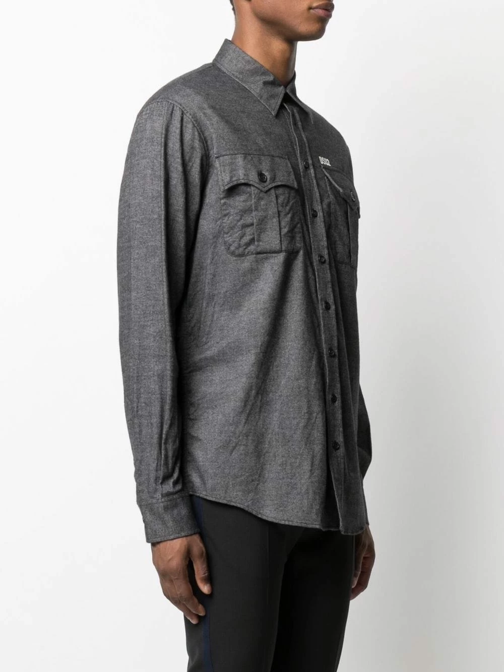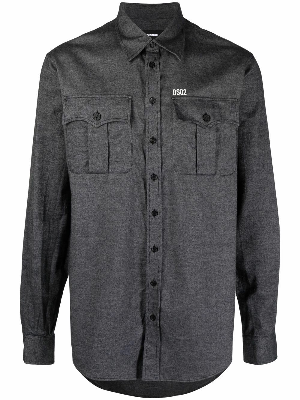 Col classique, boutonnière sur le devant, manches longues, poches devant à rabat, ourlet incurvé. Couleur : gris. Matière : coton.