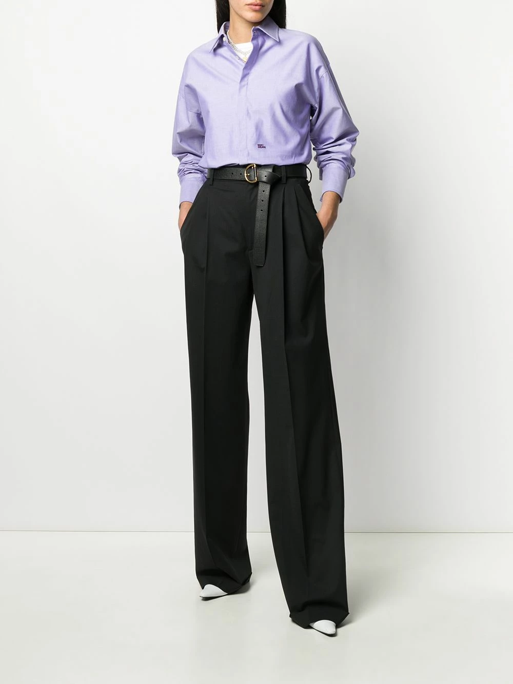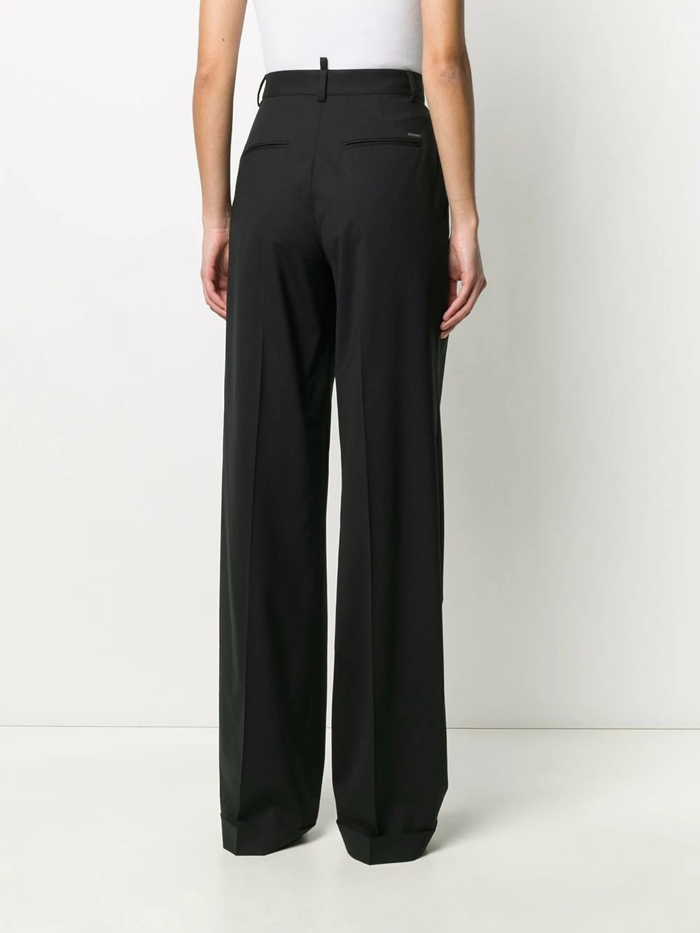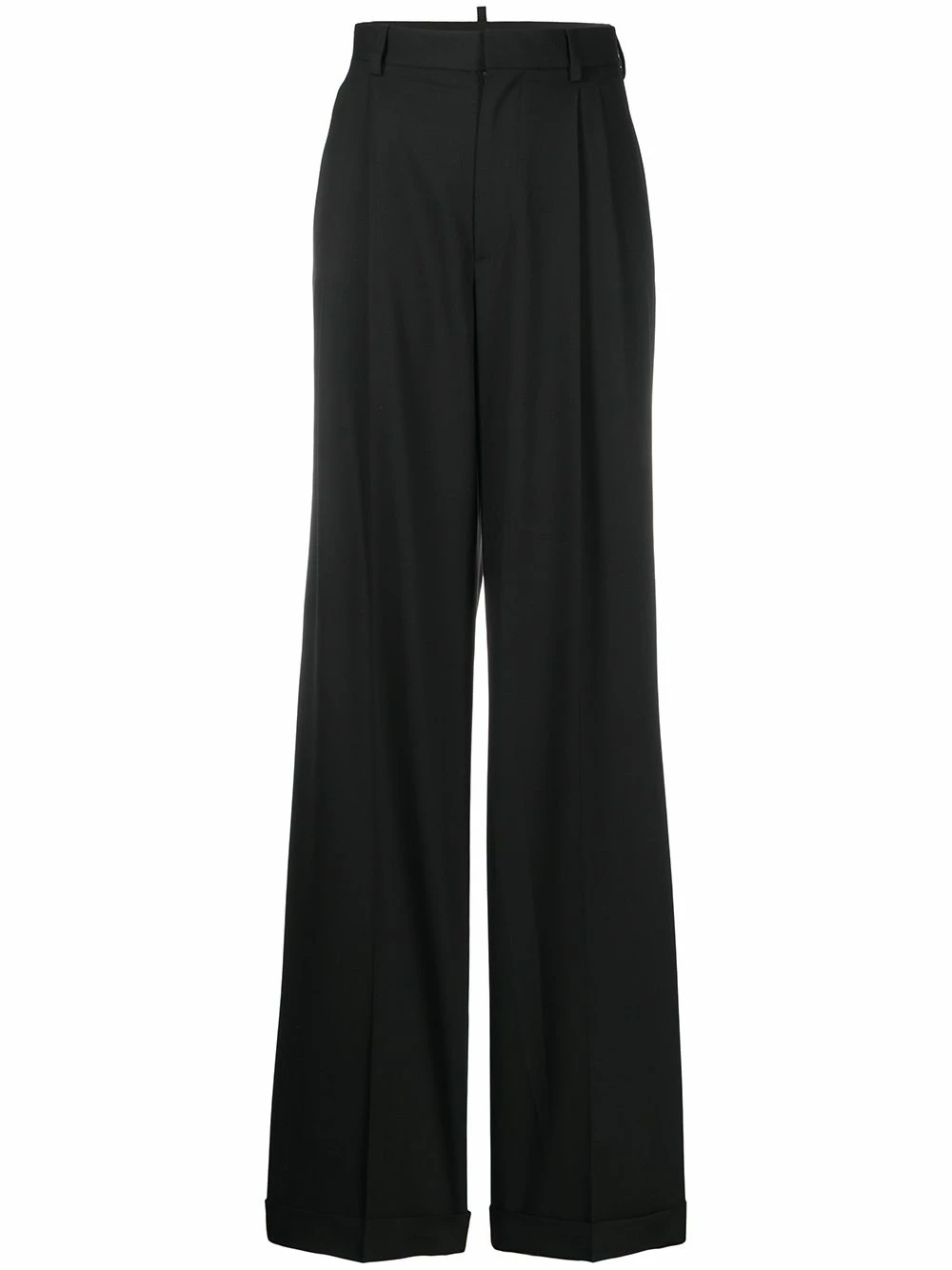 Pantalon ample à taille haute Dsquared2 avec taille haute, passants de ceinture à la taille, fermeture devant dissimulée, poches latérales, poches arrière, coupe ample et coupe longue.