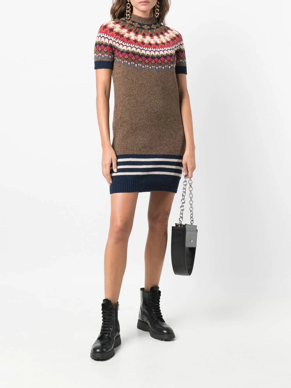 Multicolore, laine, design tricoté, motif intarsia, détail nervuré, col montant, manches courtes.
