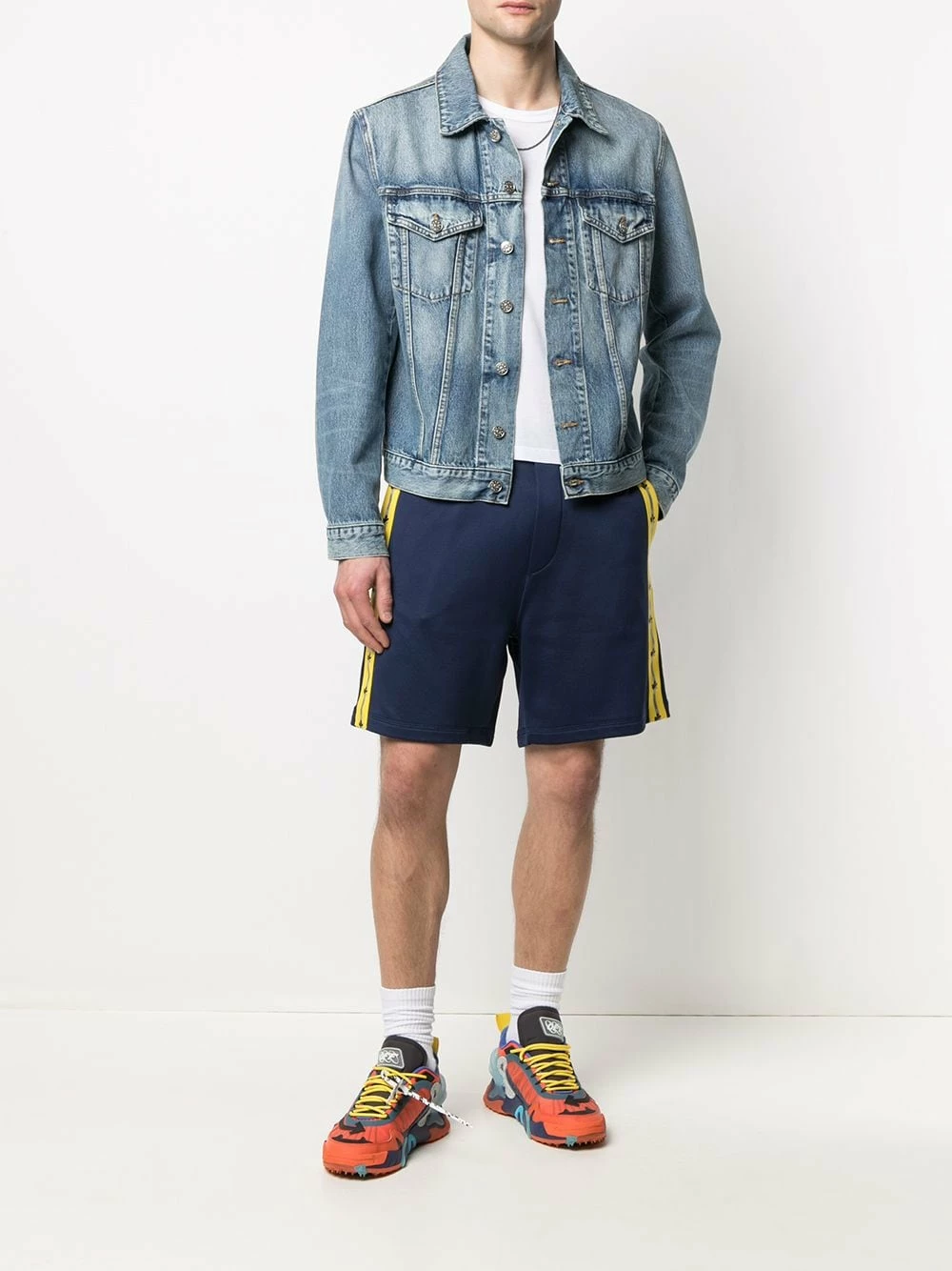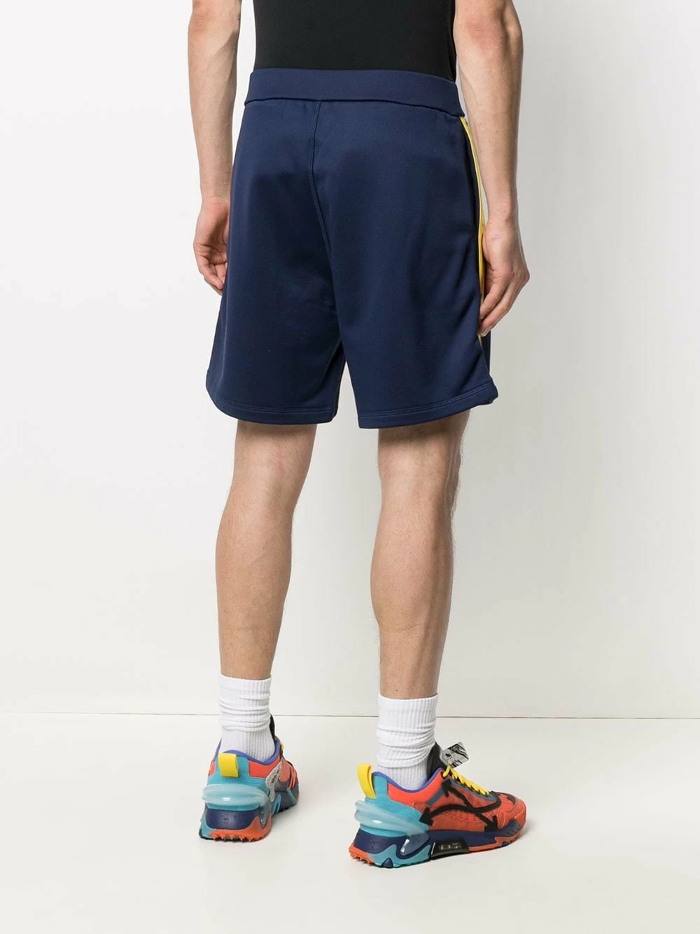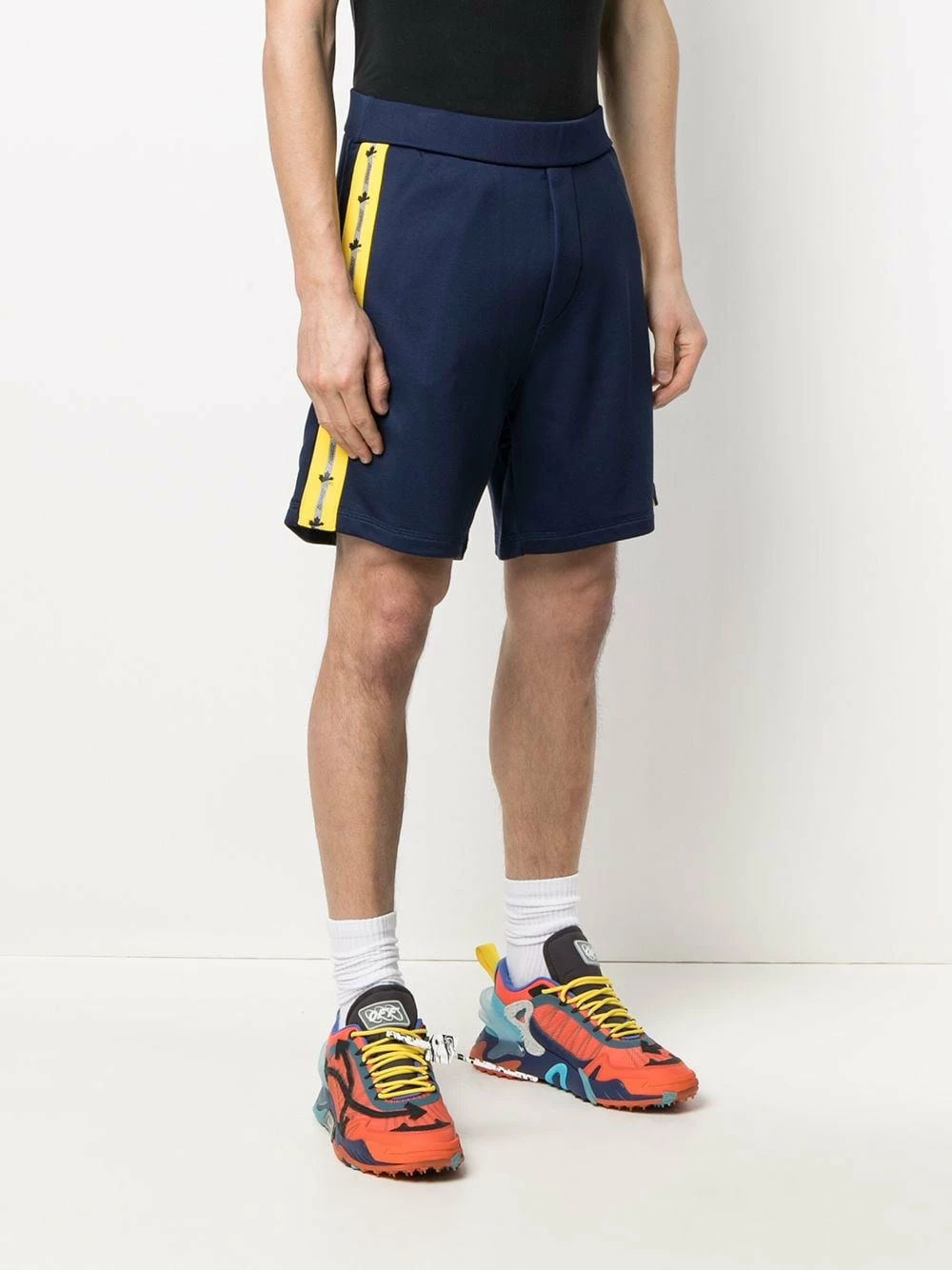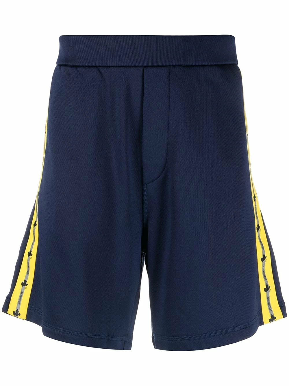 Finition à bande logo, ceinture élastique, hauteur genou. Couleur : bleu.