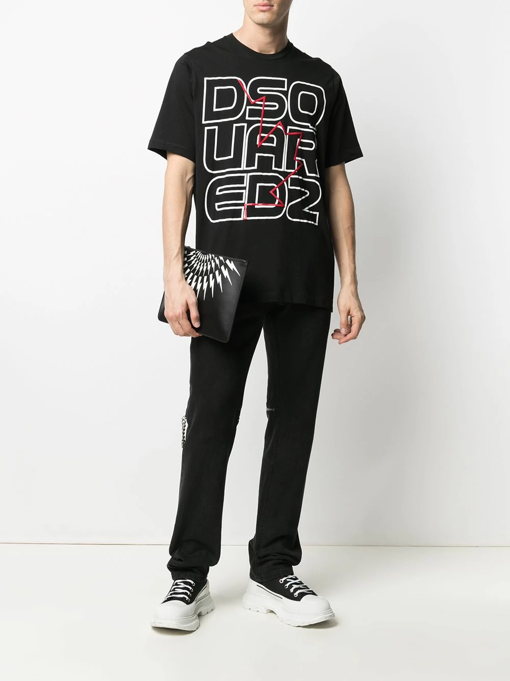 Logo imprimé sur le devant, encolure ras du cou, manches courtes, ourlet droit. Couleur : noir. Matière : coton.