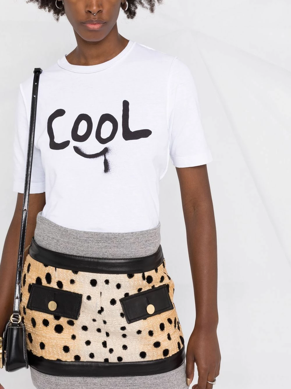 Imprimé graffiti, encolure ras du cou, manches courtes, ourlet droit. Matière : coton.