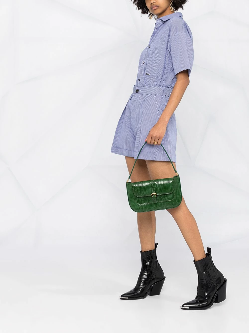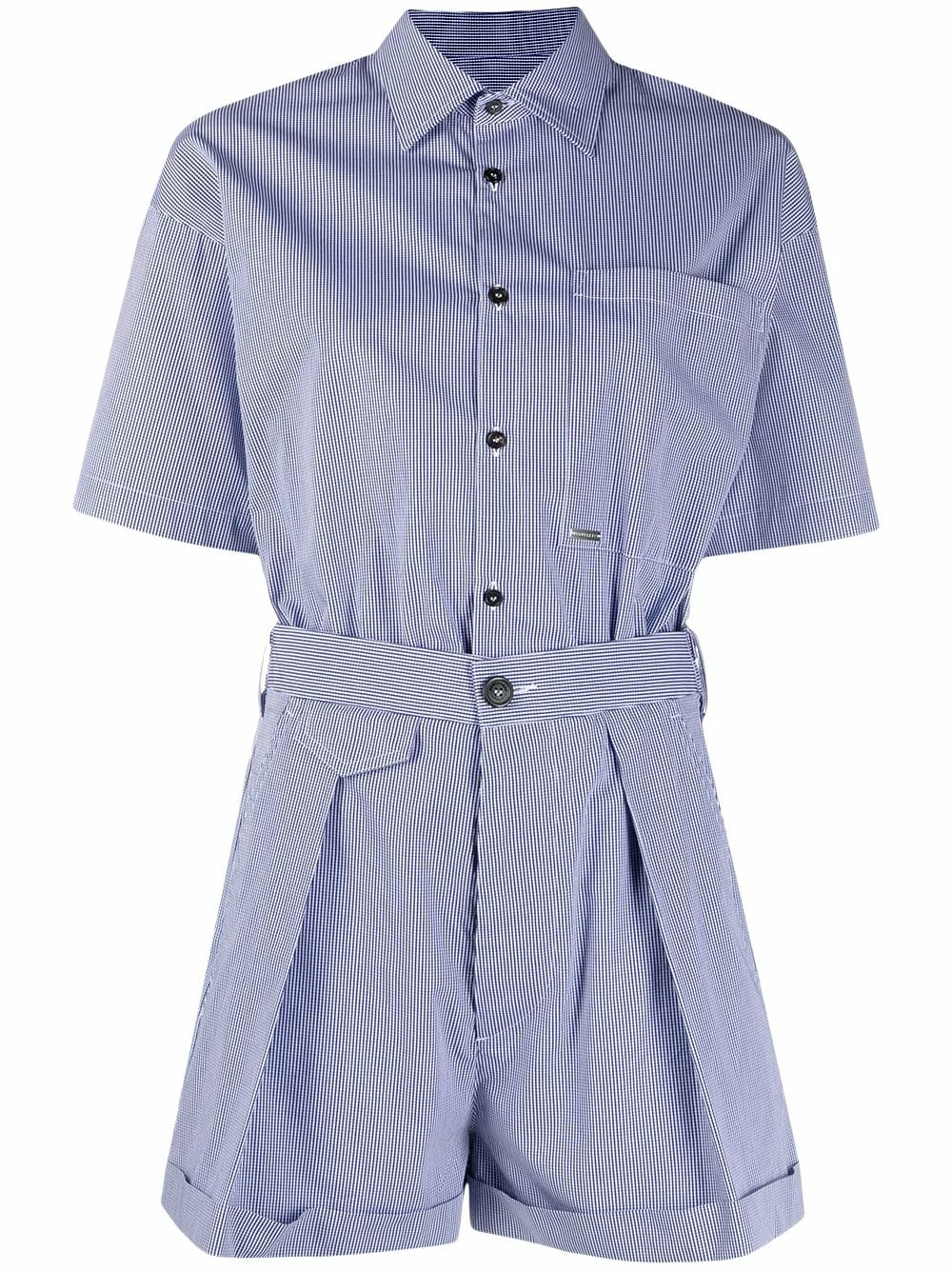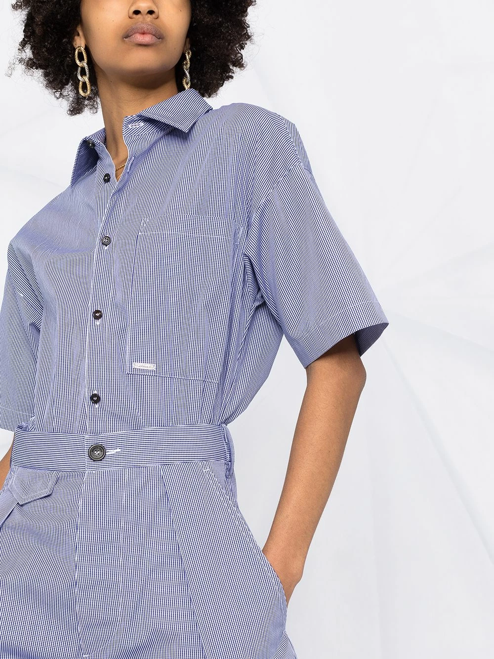 Imprimé à carreaux, col classique, boutonnière sur le devant, manches courtes, plaque logo, poche poitrine plaquée, détails de fronces, poche devant à rabat. Matière : coton.