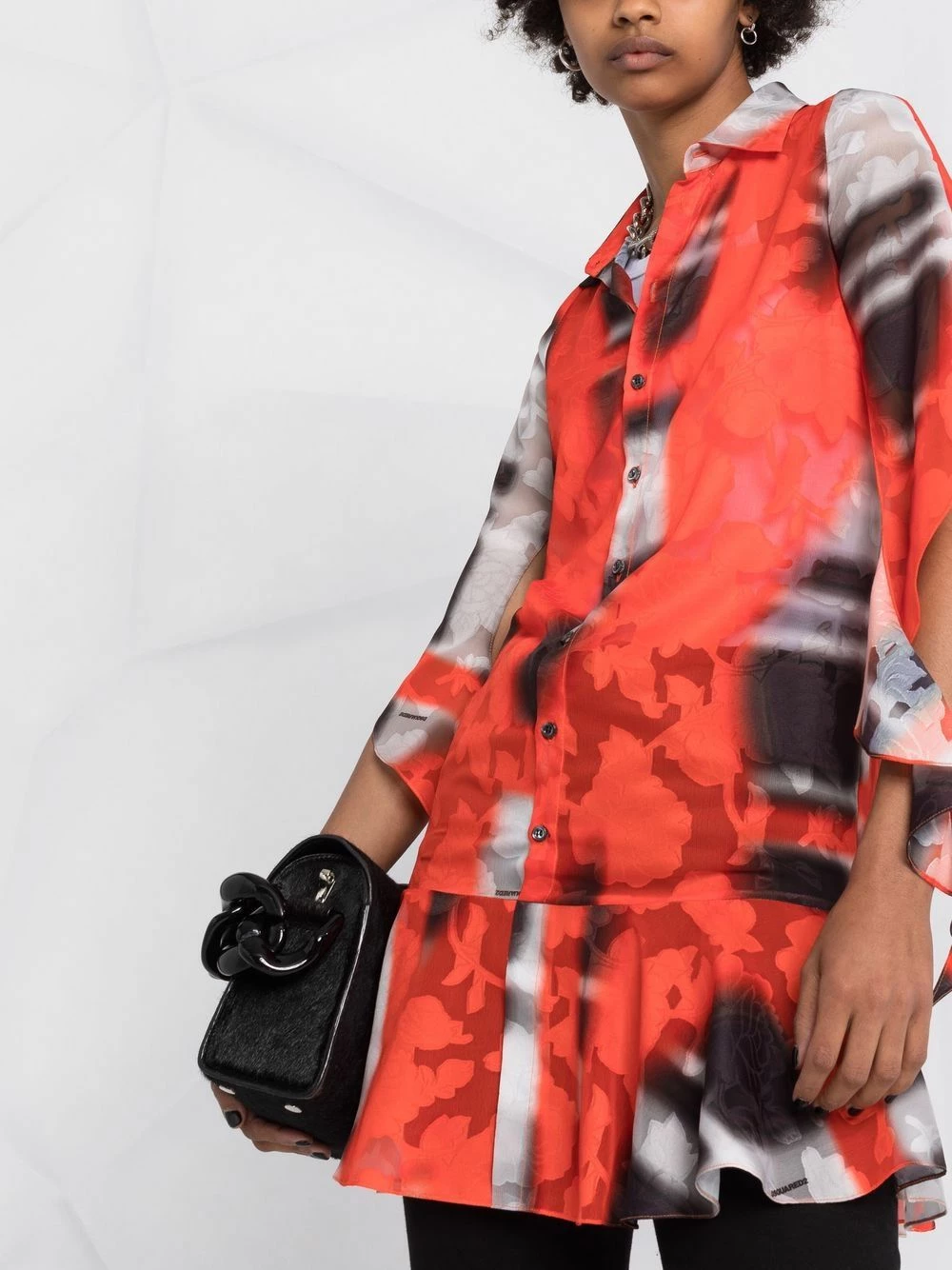 Col classique, boutonnière sur le devant, imprimé abstrait, structure légère, manches courtes, fentes latérales, ourlet évasé.