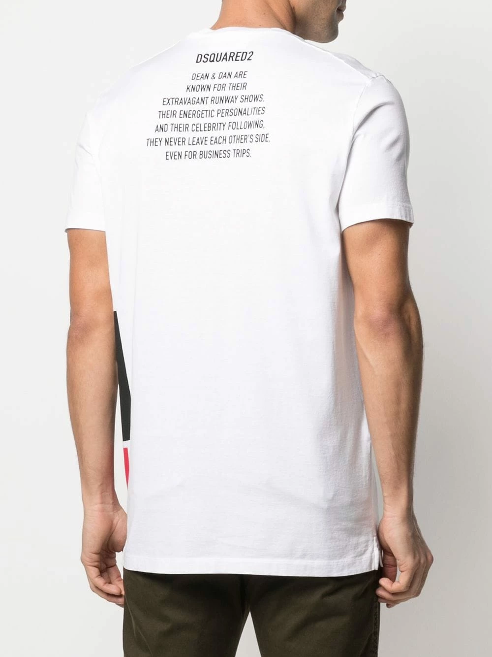 Tricot point jersey, imprimé graphique, encolure ras du cou, manches courtes. Couleur : Blanc. Matière : coton.