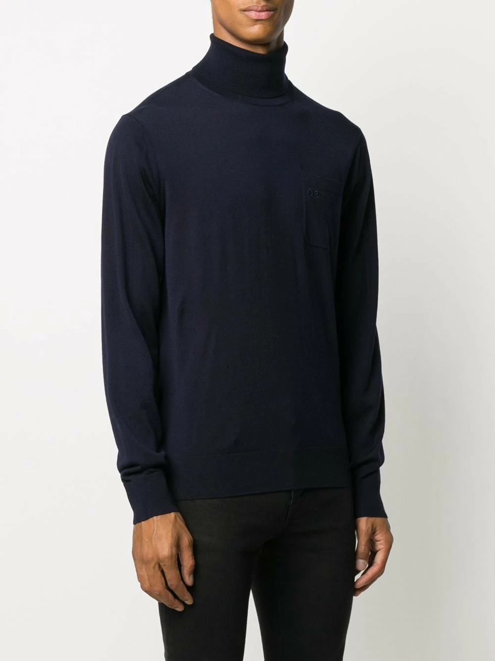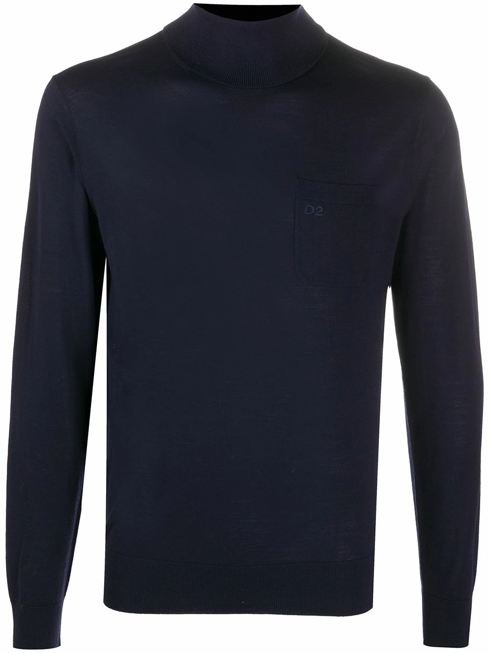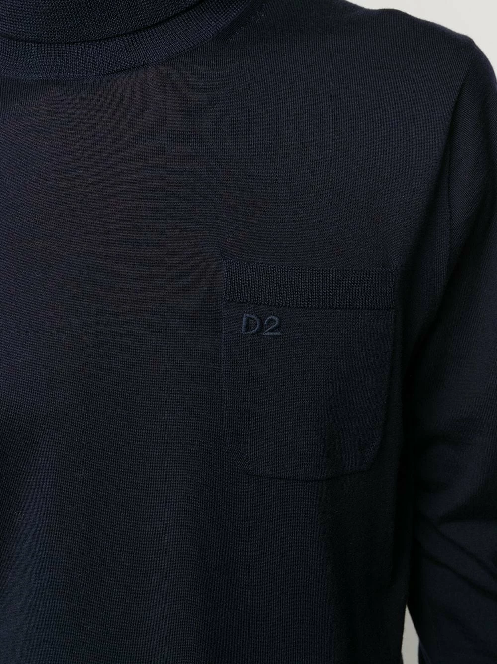 Col roulé, design tricoté, poche poitrine plaquée, logo brodée sur la poitrine, manches longues, ourlet droit, bord en maille côtelée.