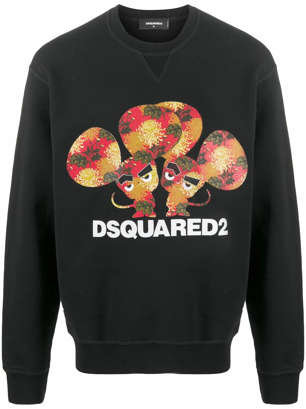 Sweat à imprimé graphique en coton Dsquared2 avec logo imprimé sur le devant, encolure ras du cou nervurée, manches longues et ourlet et poignets nervurés. Couleur : noir.