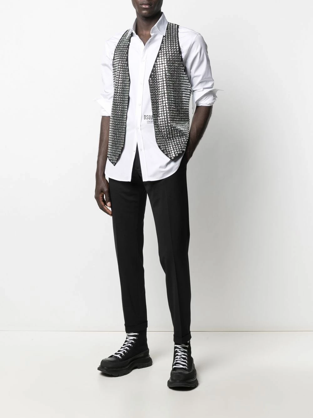 Design à empiècements, ornement en cristal, tirants ajustables, design à enfiler. Couleur : gris.