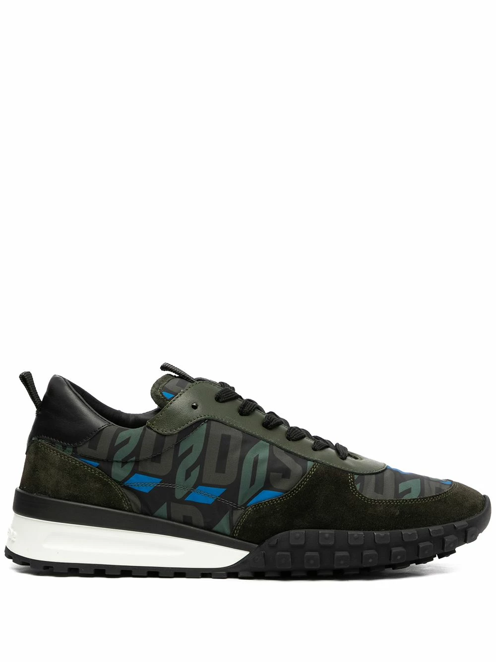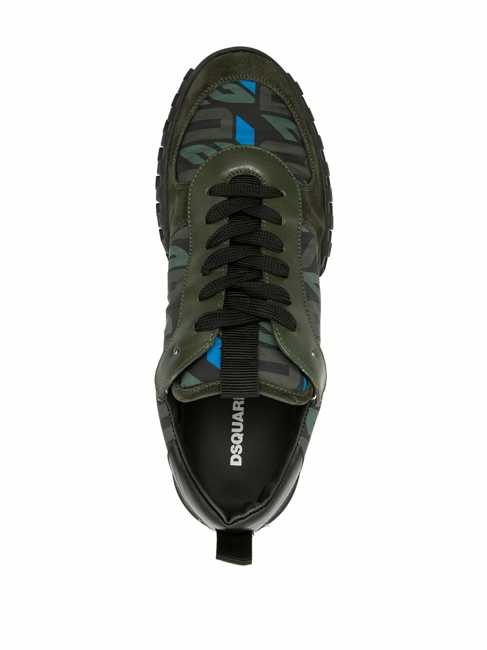 Bout rond, imprimé monogrammé, fermeture à lacer sur le devant, ouverture à double languette, semelle en caoutchouc. Matière : cuir.