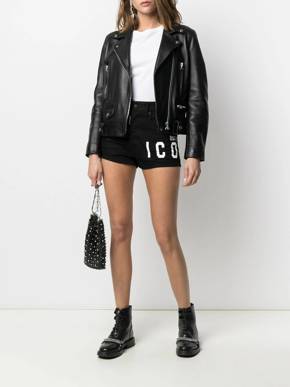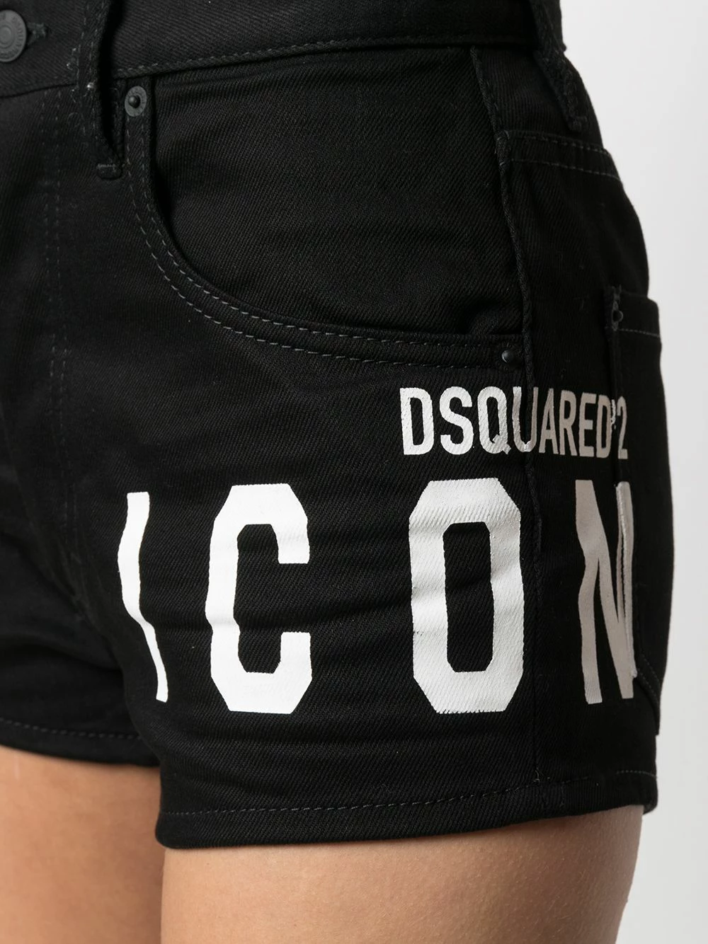 Logo imprimé sur la cuisse, taille haute, patch logo sur l’arrière, fermeture à zip et boutons sur le devant, 5 poches classiques, coupe courte. Couleur : noir. Matière : coton.
