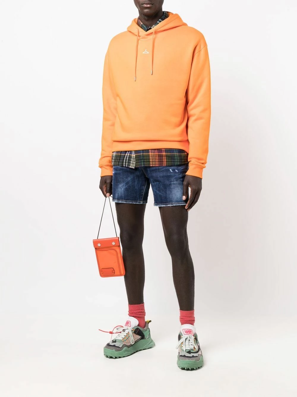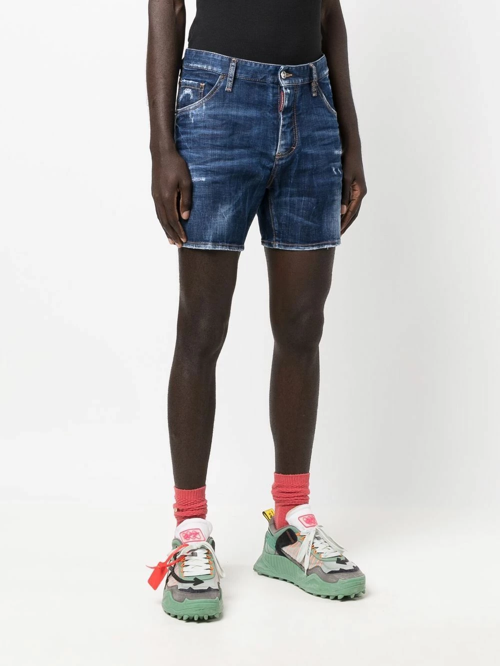 Effet délavé, patch logo sur le devant, patch logo sur l’arrière, passants de ceinture, fermeture à zip et boutons sur le devant, cinq poches classiques.