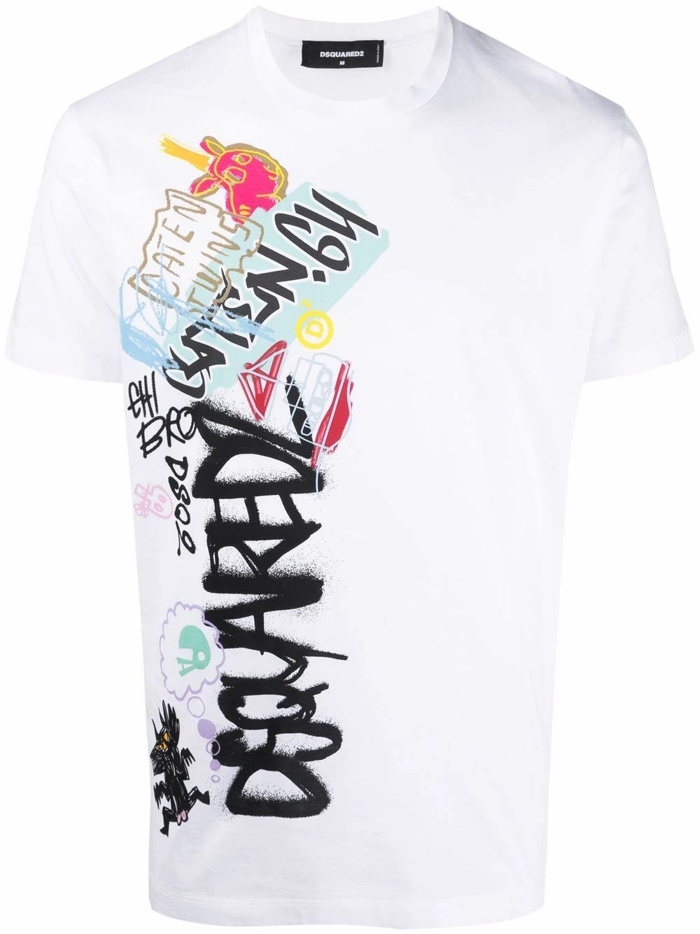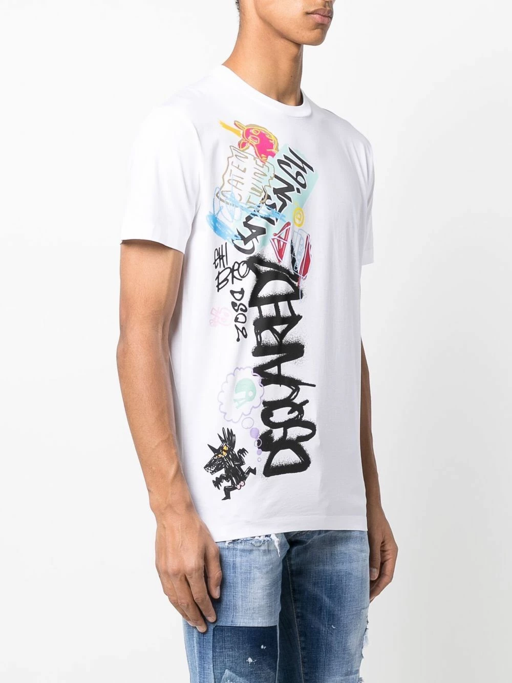 Tricot point jersey, logo imprimé sur le devant, encolure ronde, manches courtes, ourlet droit. Matière : coton.