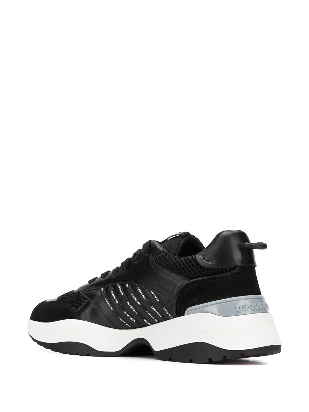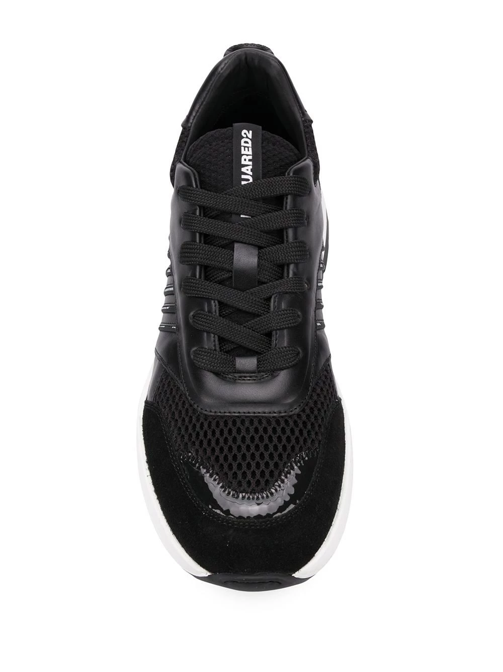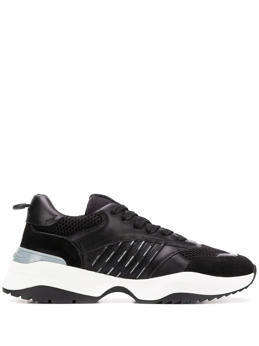 Baskets D24 en cuir Dsquared2 avec bout rond, fermeture à lacer sur le devant, patch logo sur la languette, empiècements en résille et semelle en caoutchouc.