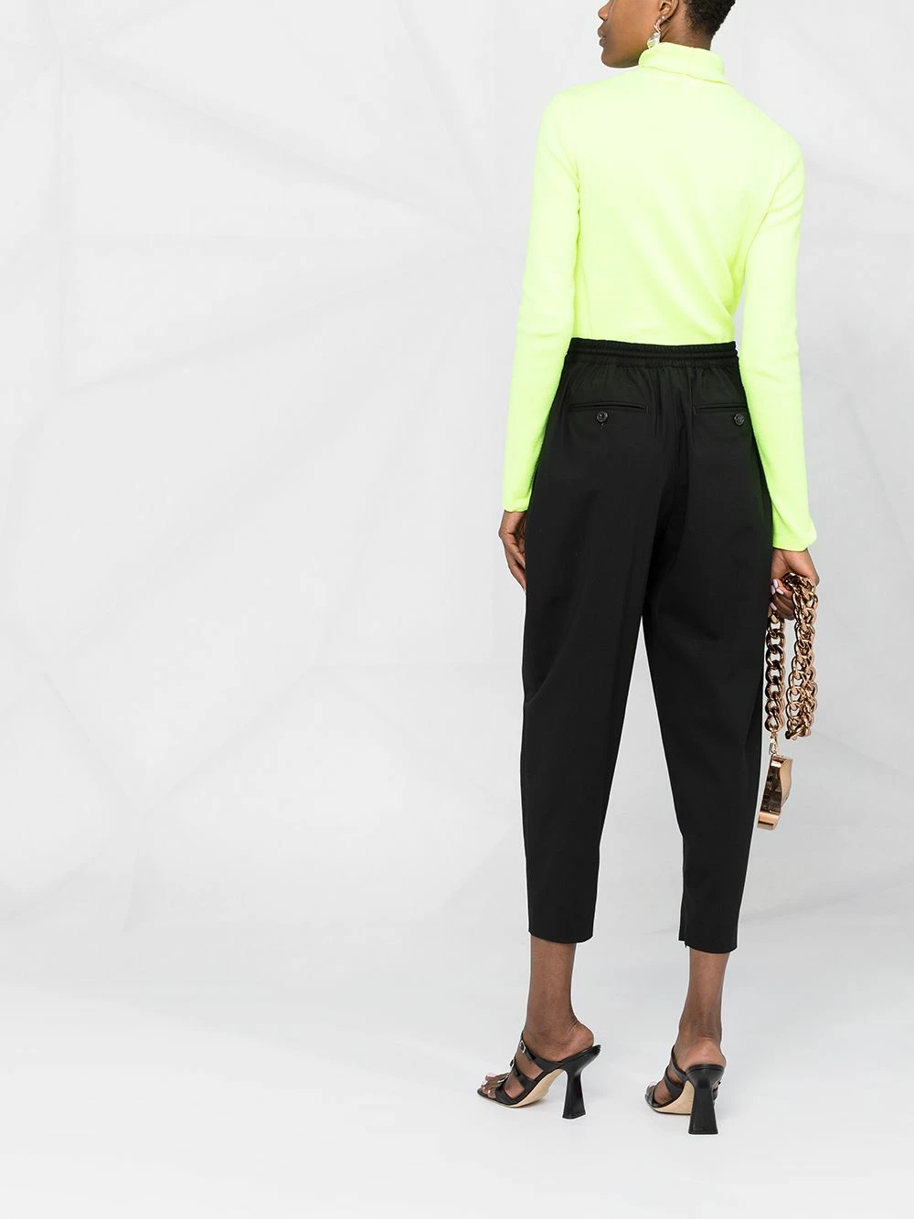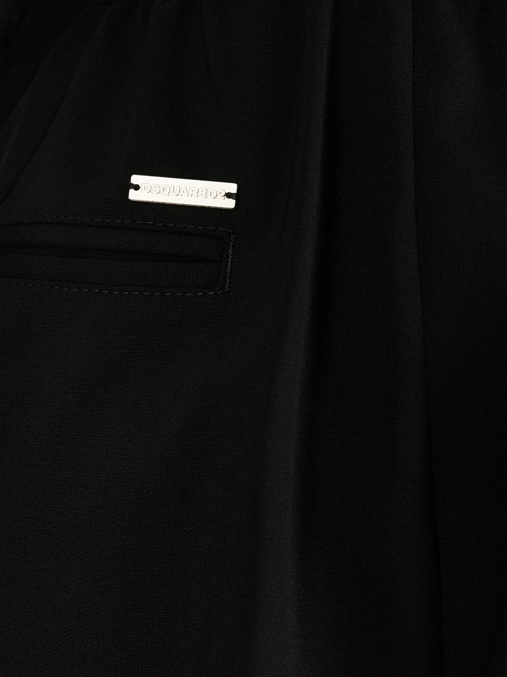 Ceinture élastique, fermeture à lien de resserrage, deux poches latérales passepoilées, poches arrière passepoilées, coupe courte. Couleur : Noir.