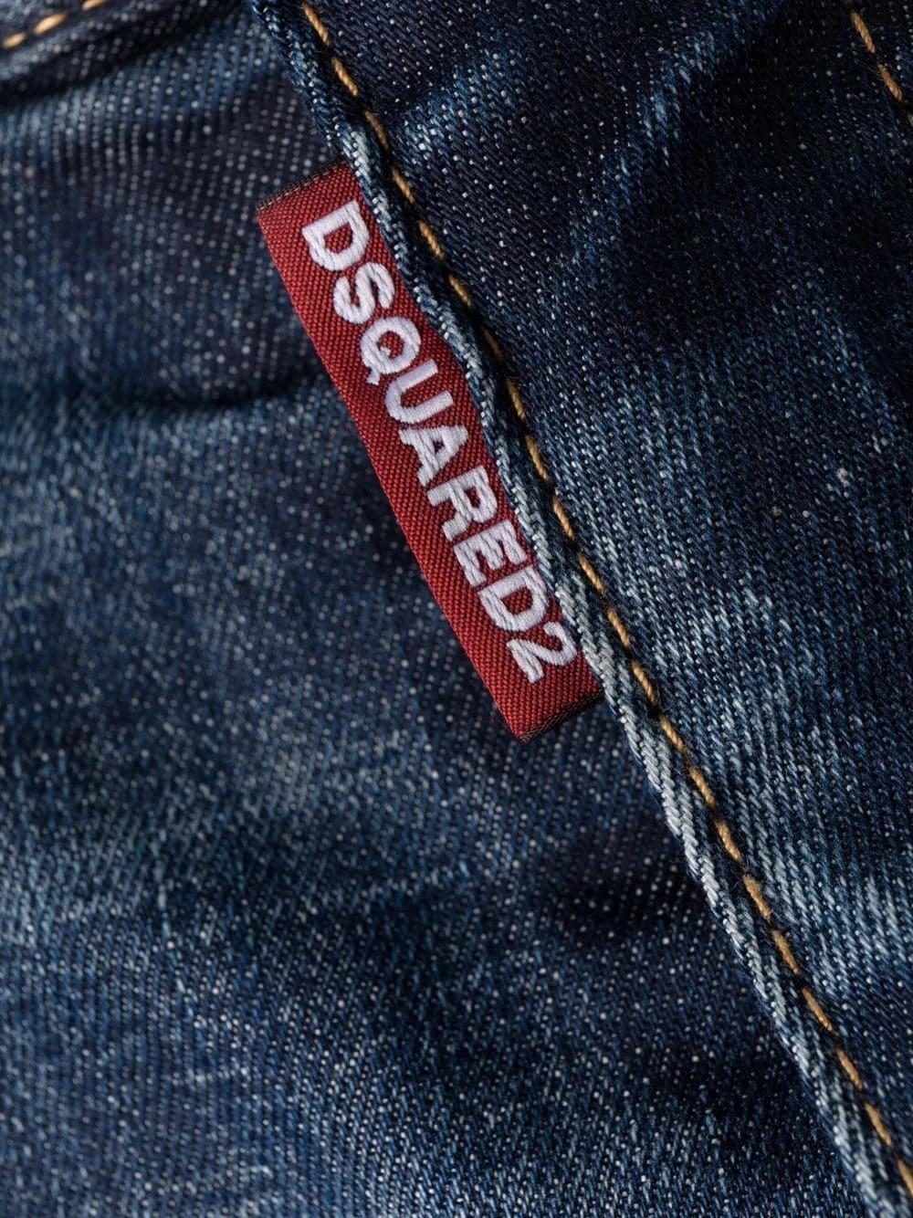 Effet usé, patch logo sur l’arrière, passants de ceinture, cinq poches classiques, coupe droite. Matière : coton mélangé.