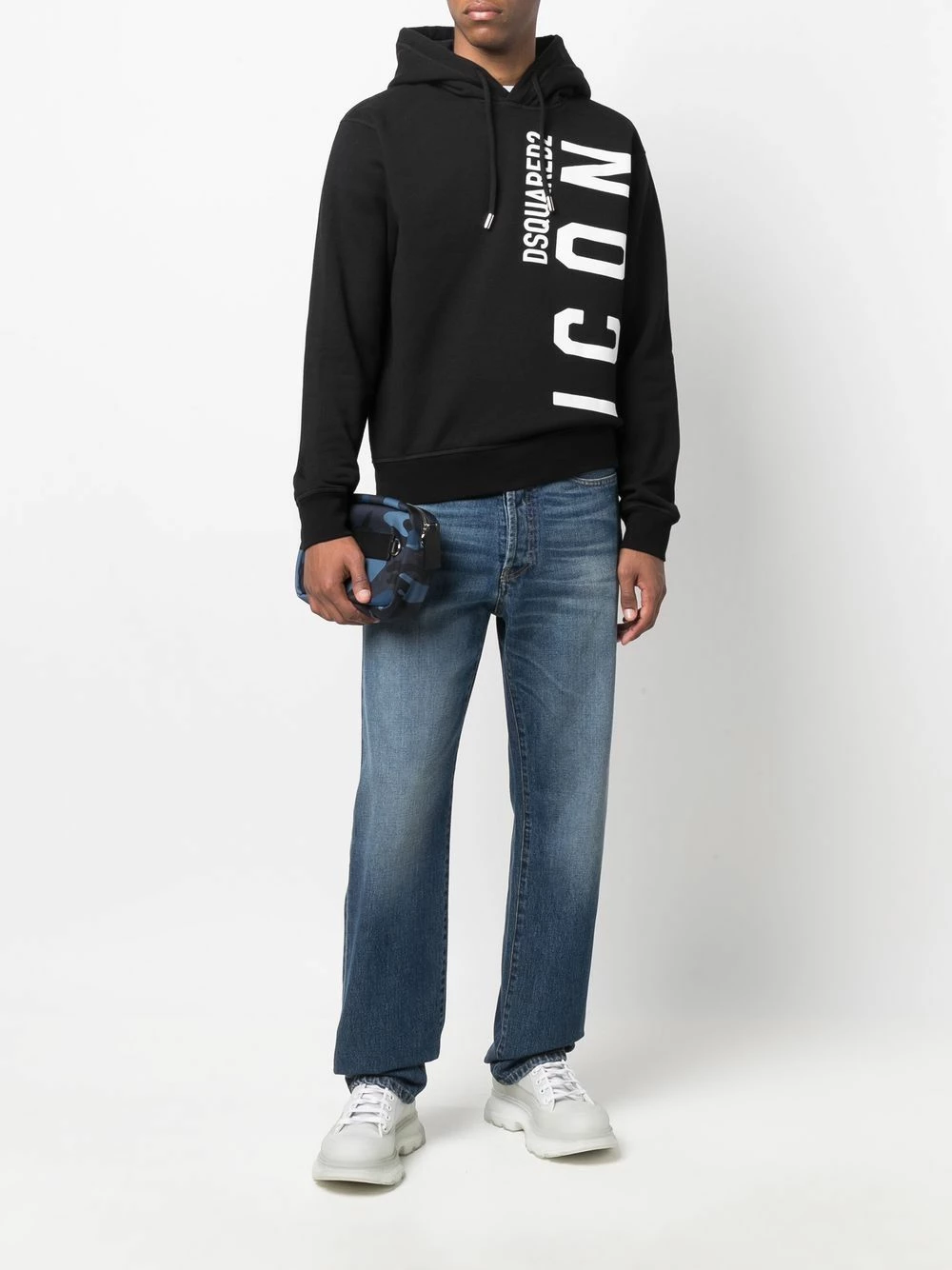 Logo imprimé sur le devant, capuche à lien de resserrage, manches longues, ourlet droit. Matière : coton.
