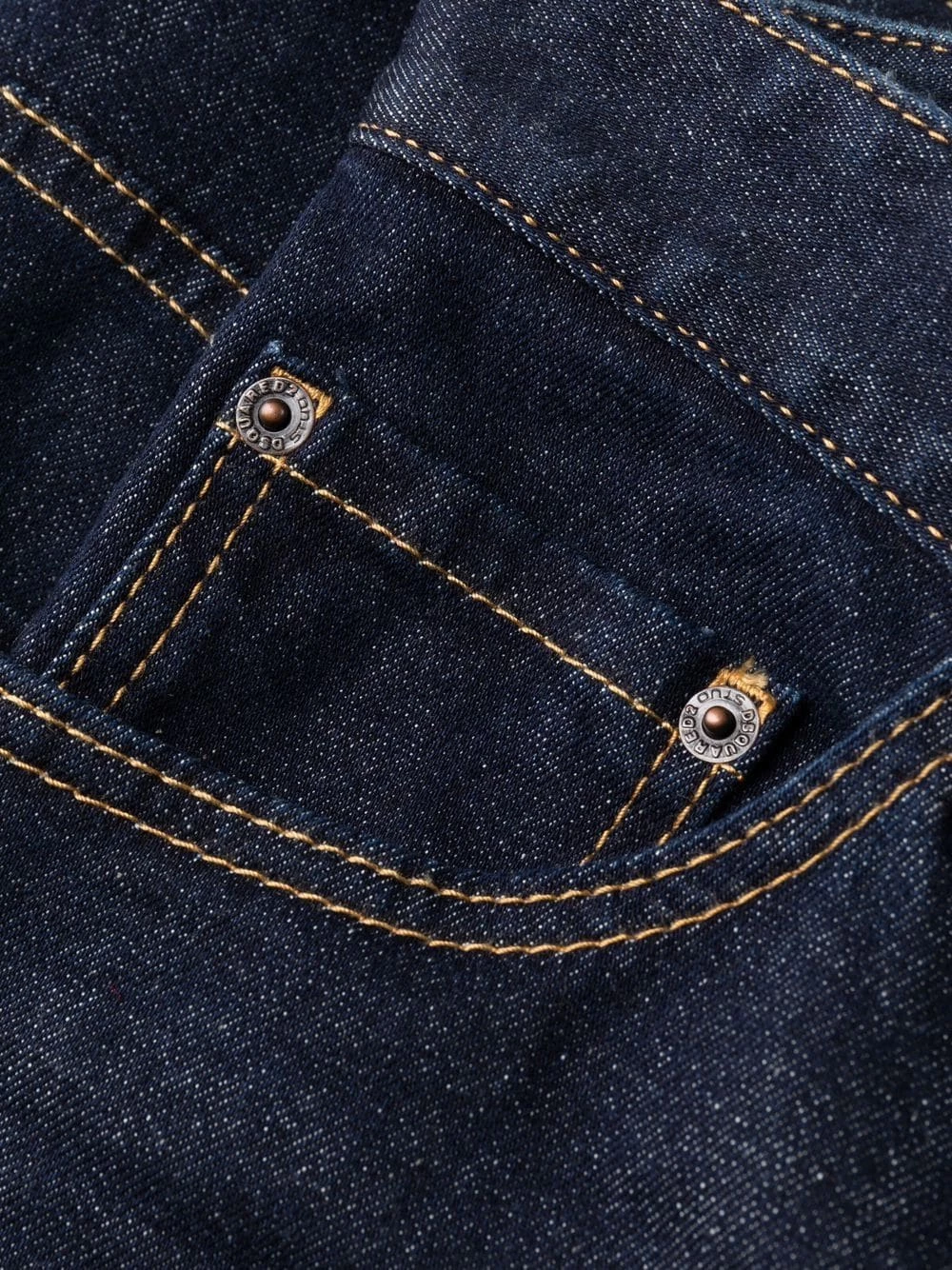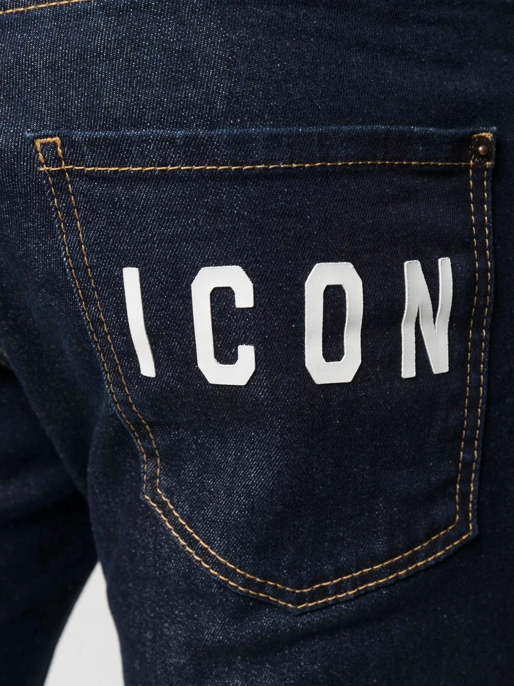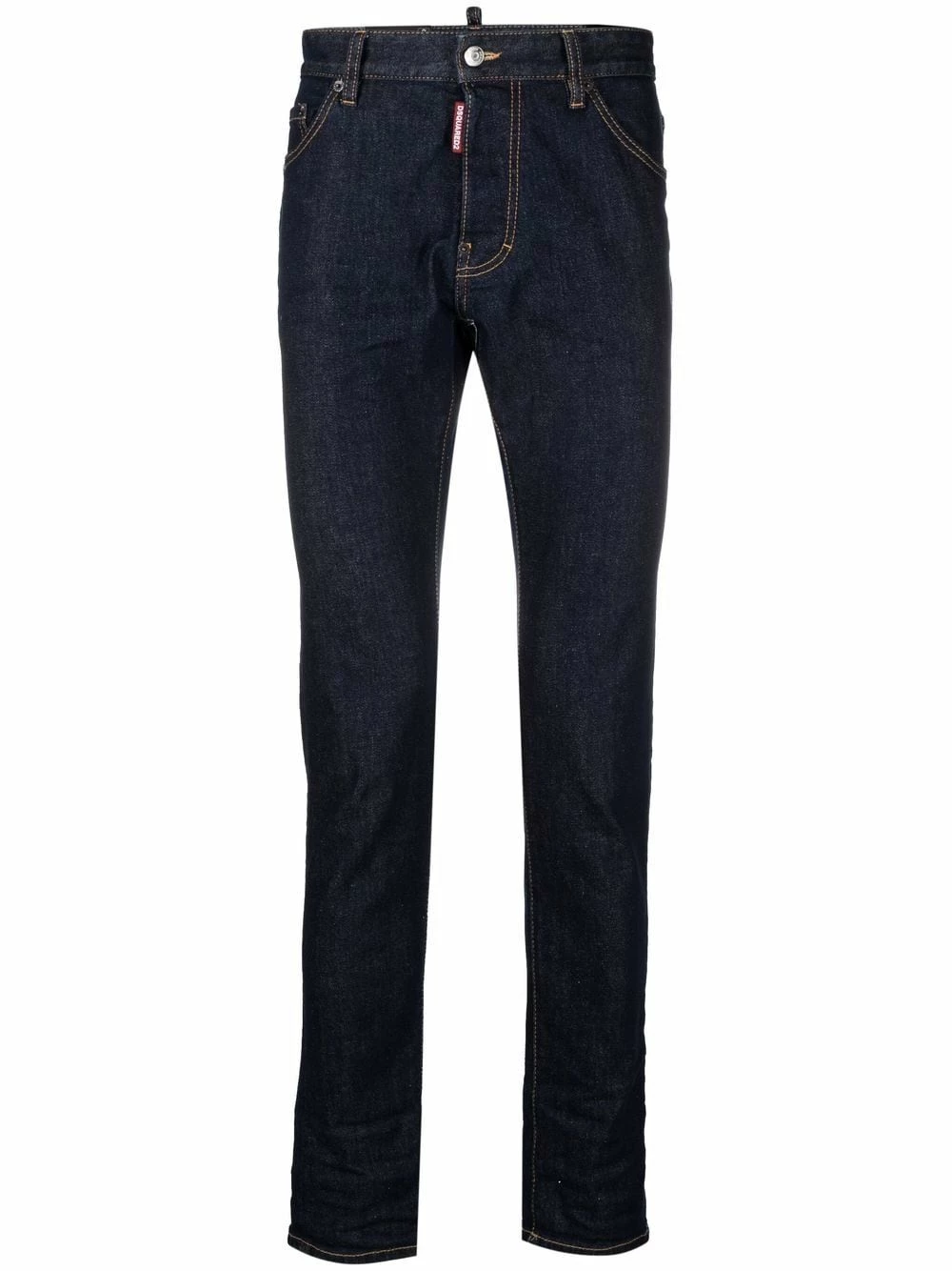 Patch logo sur l’arrière, logo imprimé à l’arrière, passants de ceinture, fermeture à zip et boutons sur le devant, cinq poches classiques, coupe skinny. Couleur : bleu.