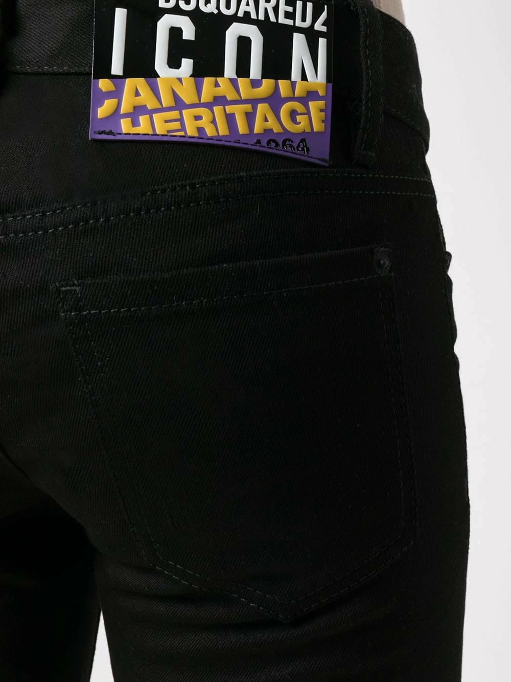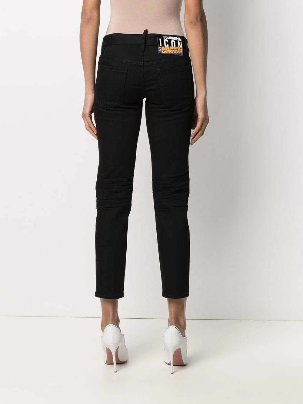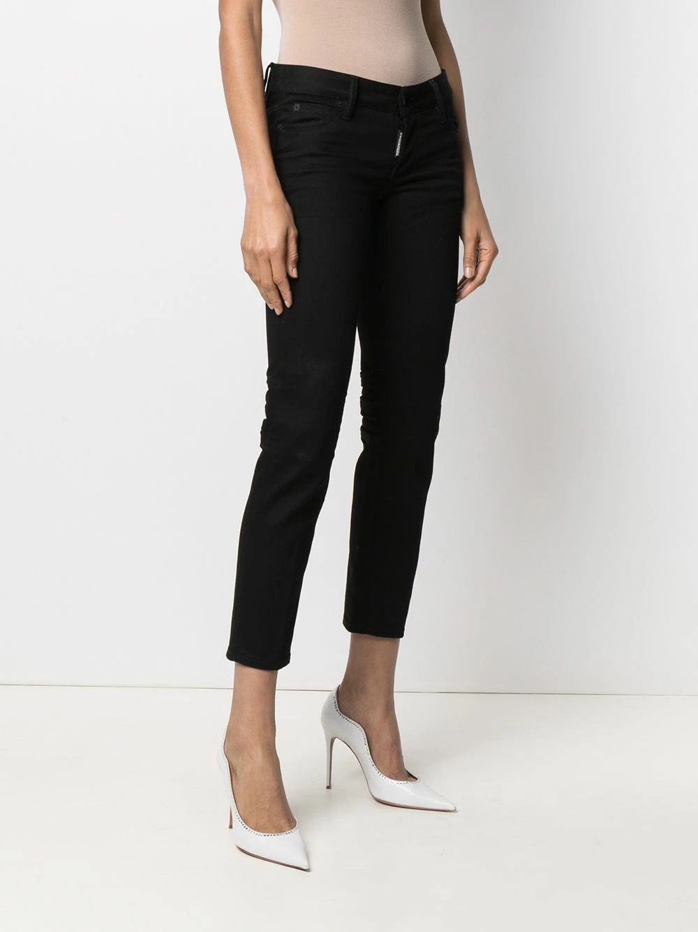 Taille basse, longueur crop, coupe skinny, passants de ceinture, fermeture dissimulée sur le devant, 5 poches classiques. Couleur : noir.