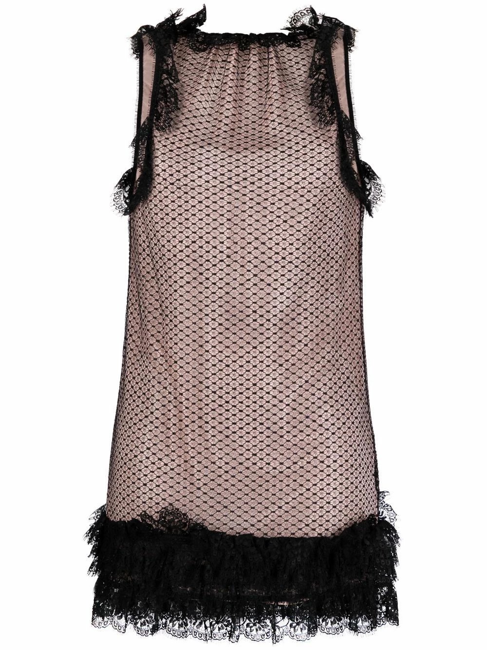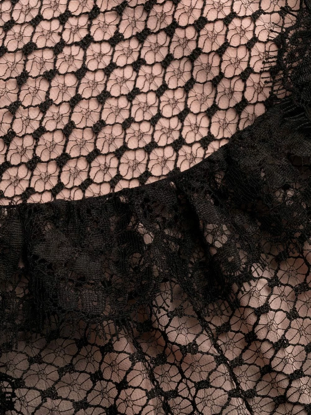 Encolure volantée, détails en dentelle, détail en résille, design sans manches, jupe à volants superposés. Couleur : noir.