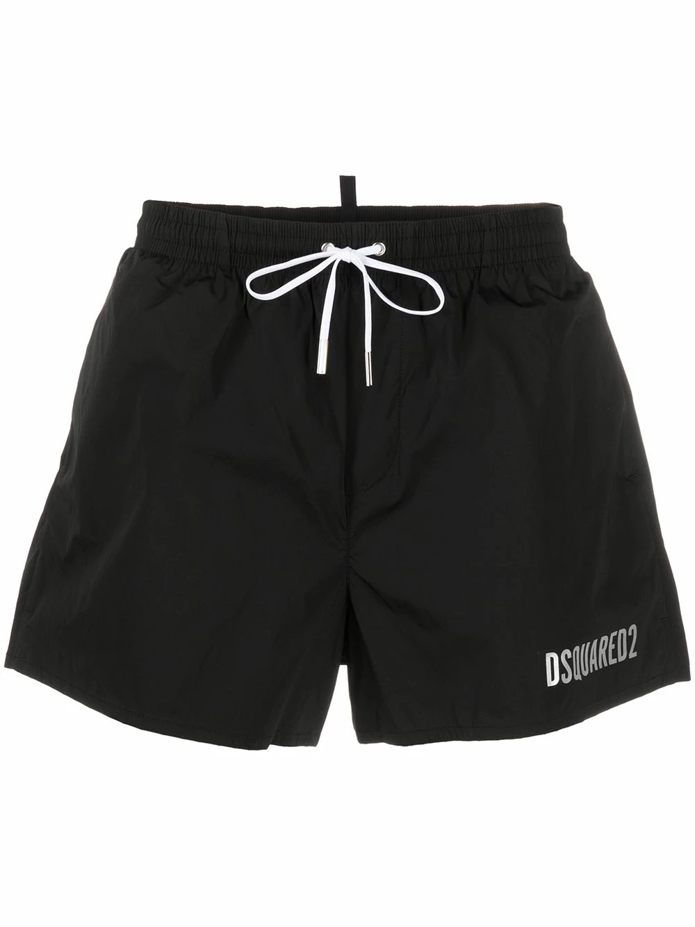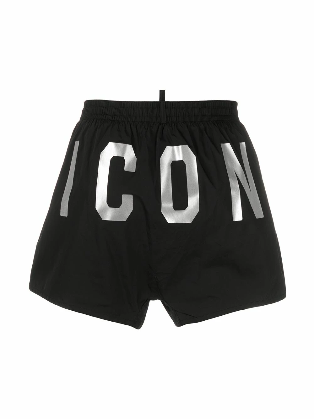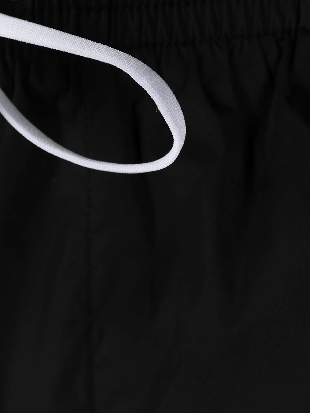 Ourlet à logo imprimé, logo imprimé à l’arrière, ceinture élastique, lien de resserrage, coupe droite, coupe courte, poches latérales fendues. Couleur : Noir.