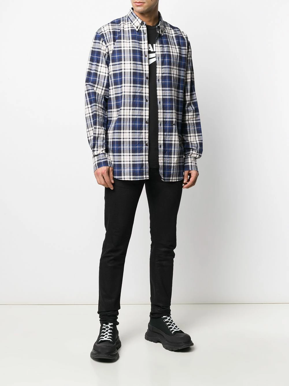 Chemise à carreaux en coton Dsquared2 avec boutonnière sur le devant, manches longues, poignets boutonnés, forme détendue et ourlet incurvé. Couleur : multicolore.