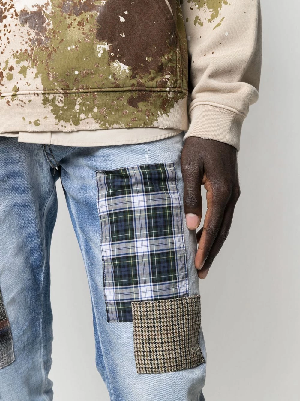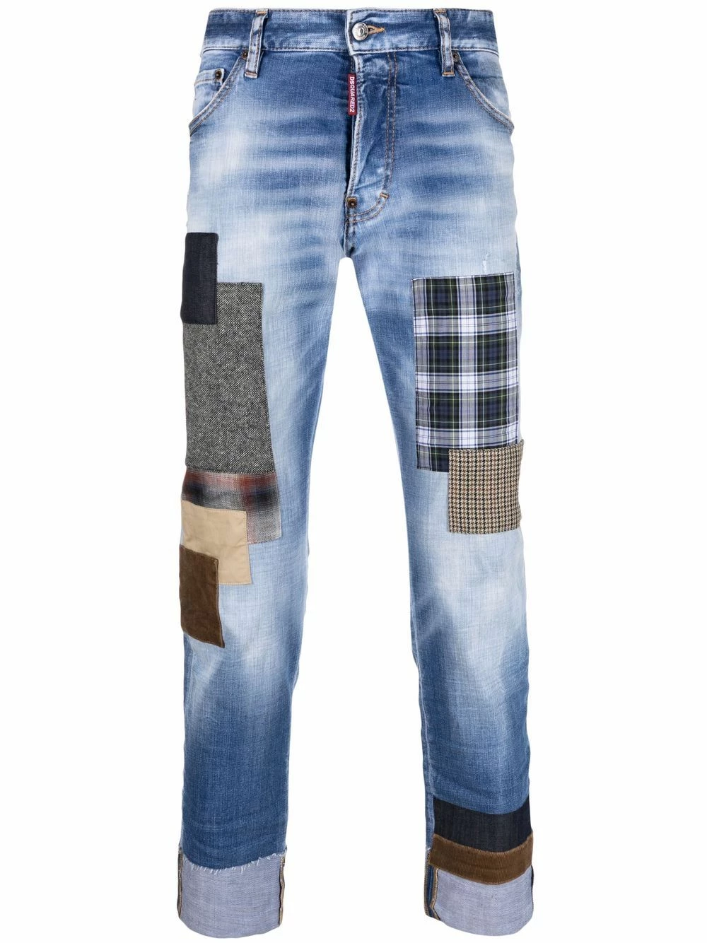 Passants de ceinture, fermeture à zip et boutons sur le devant, cinq poches classiques, détails d’empiècements, effet usé, ourlet retroussé. Couleur : bleu.