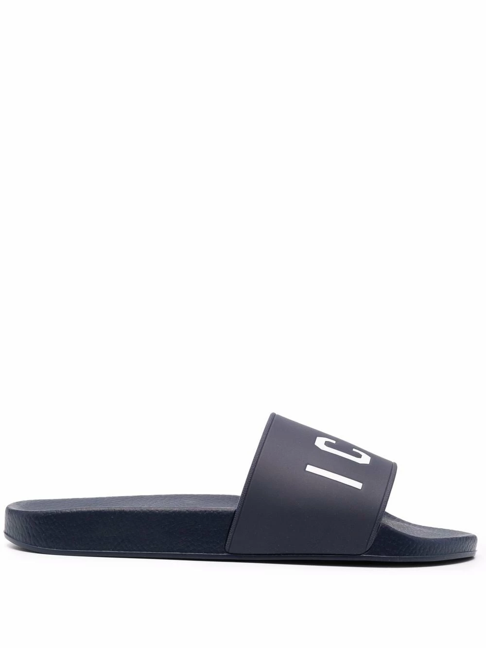Motif Icon signature, bout ouvert, design à enfiler, semelle plate en caoutchouc.