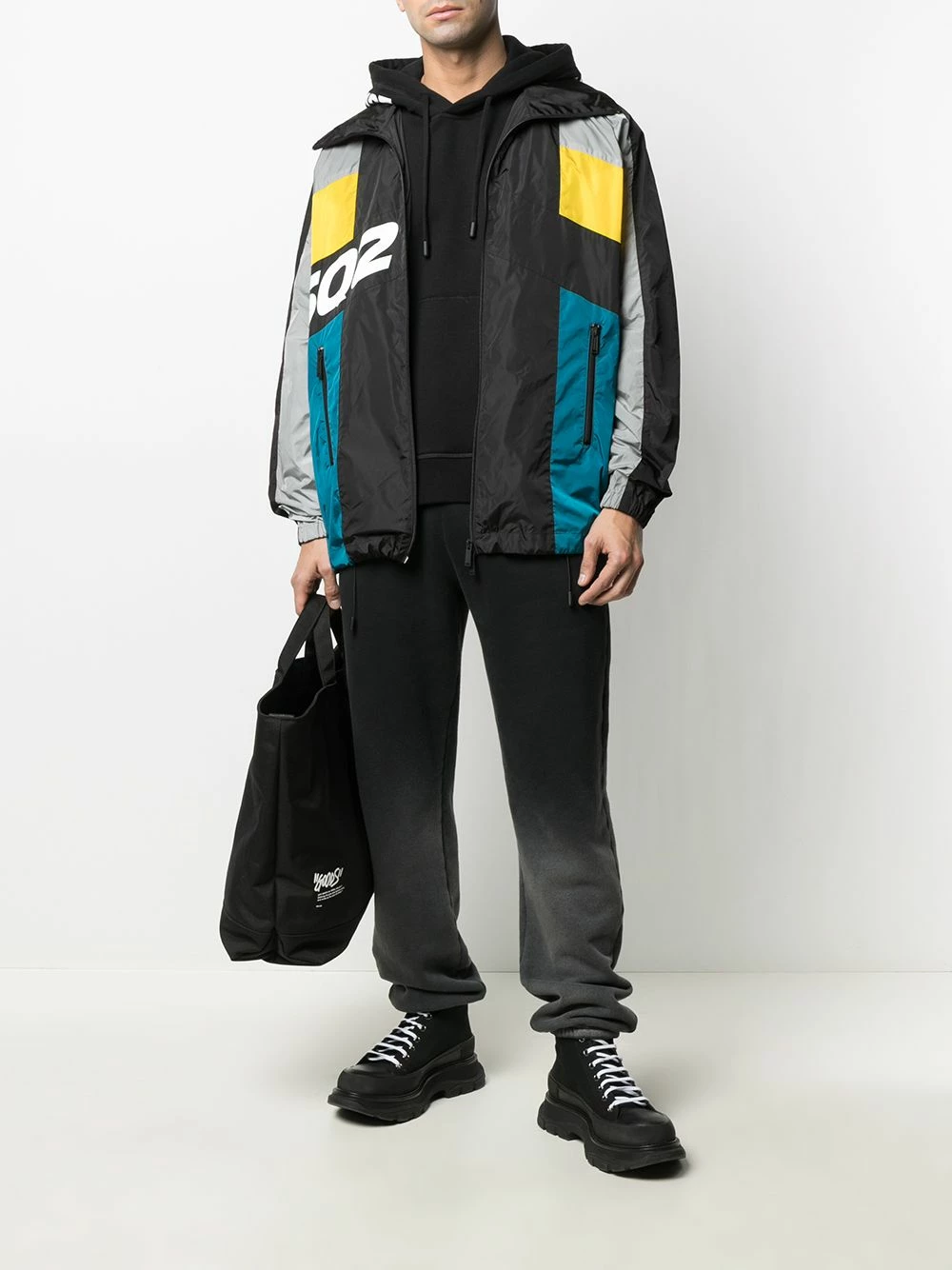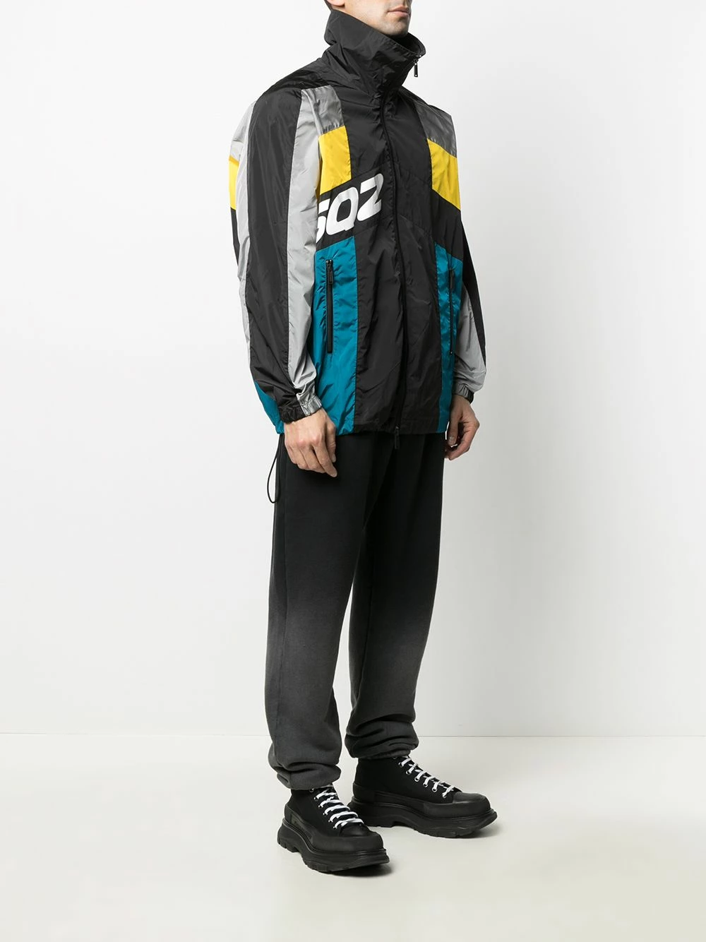 Design colour block, col cheminée, fermeture zippée devant, manches longues, poches à fermeture zippée devant.