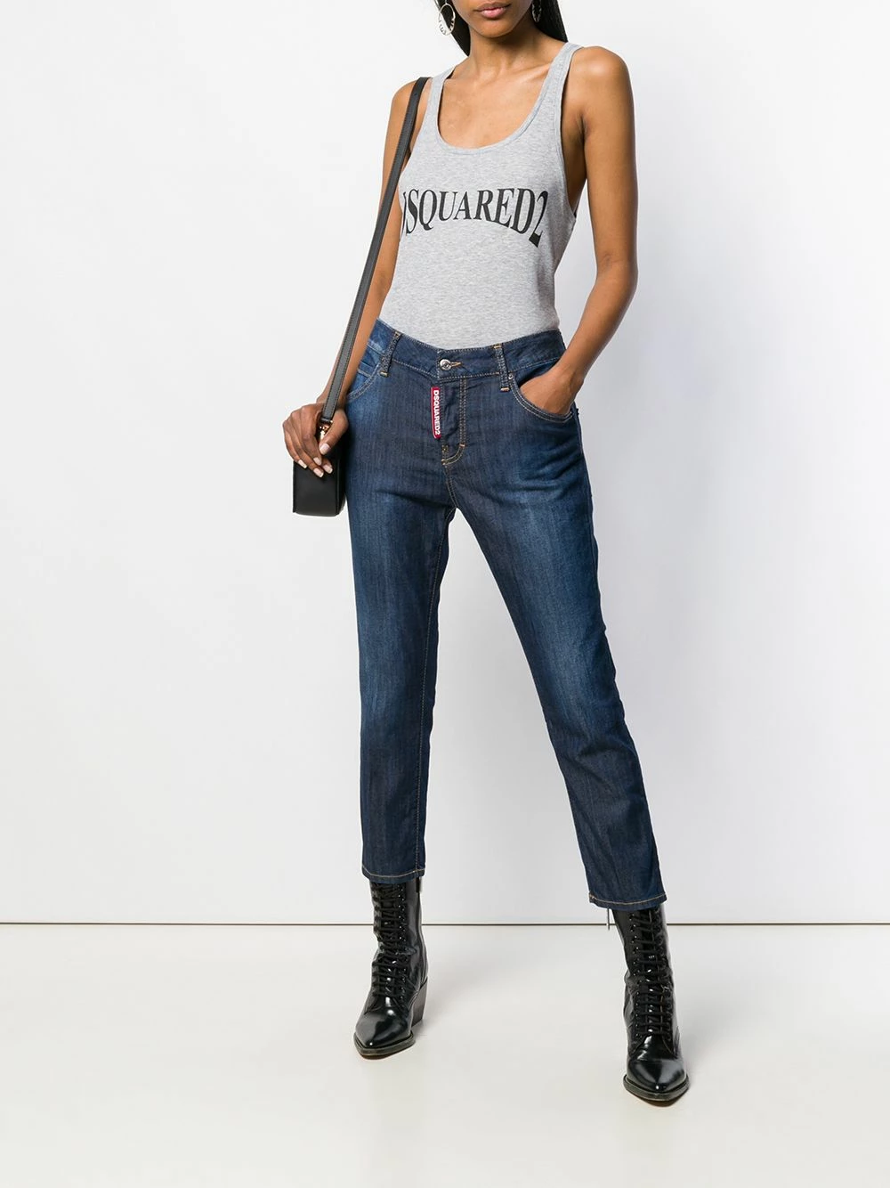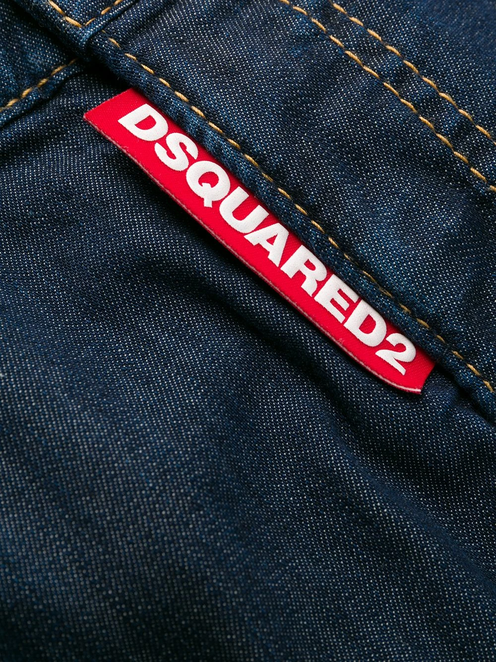 Jean ample crop Dsquared2 avec taille basse, effet sarouel, passants de ceinture à la taille, coupe classique cinq poches et coupe droite. Couleur : bleu.