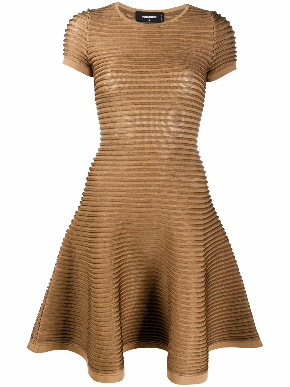 Encolure ronde, manches courtes, coupe stretch, détail nervuré. Couleur : marron.