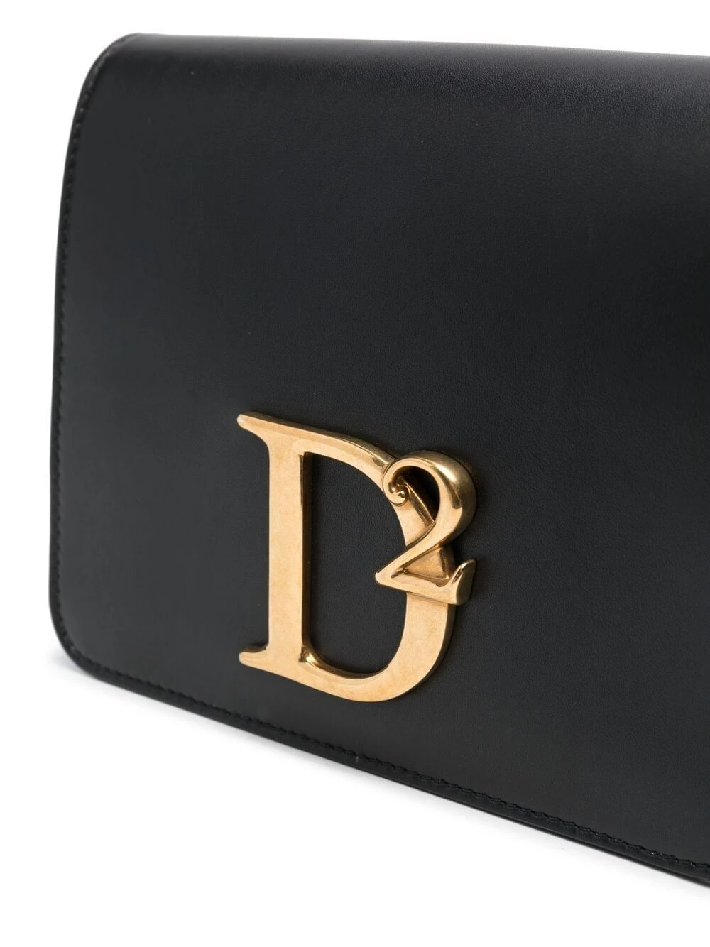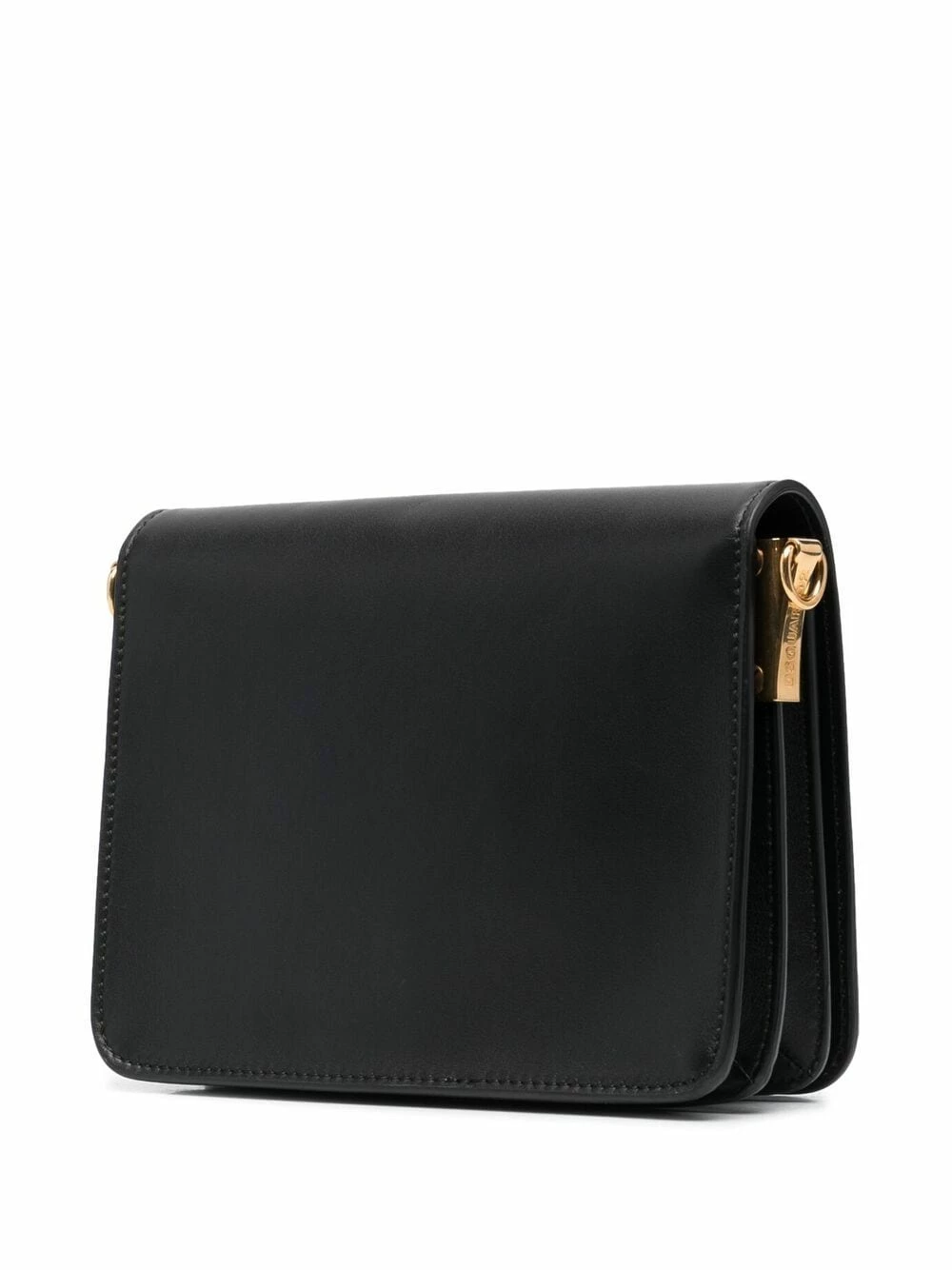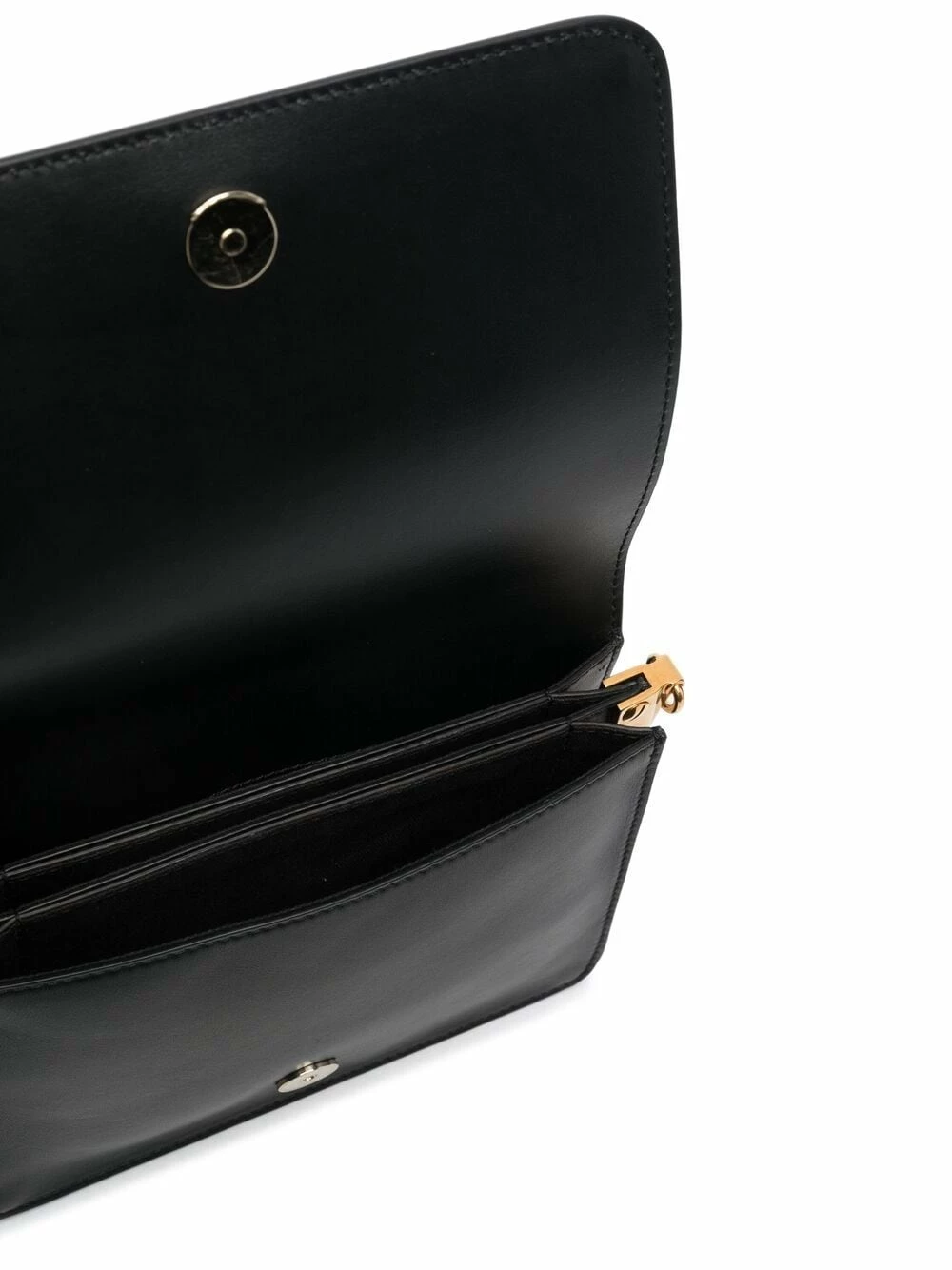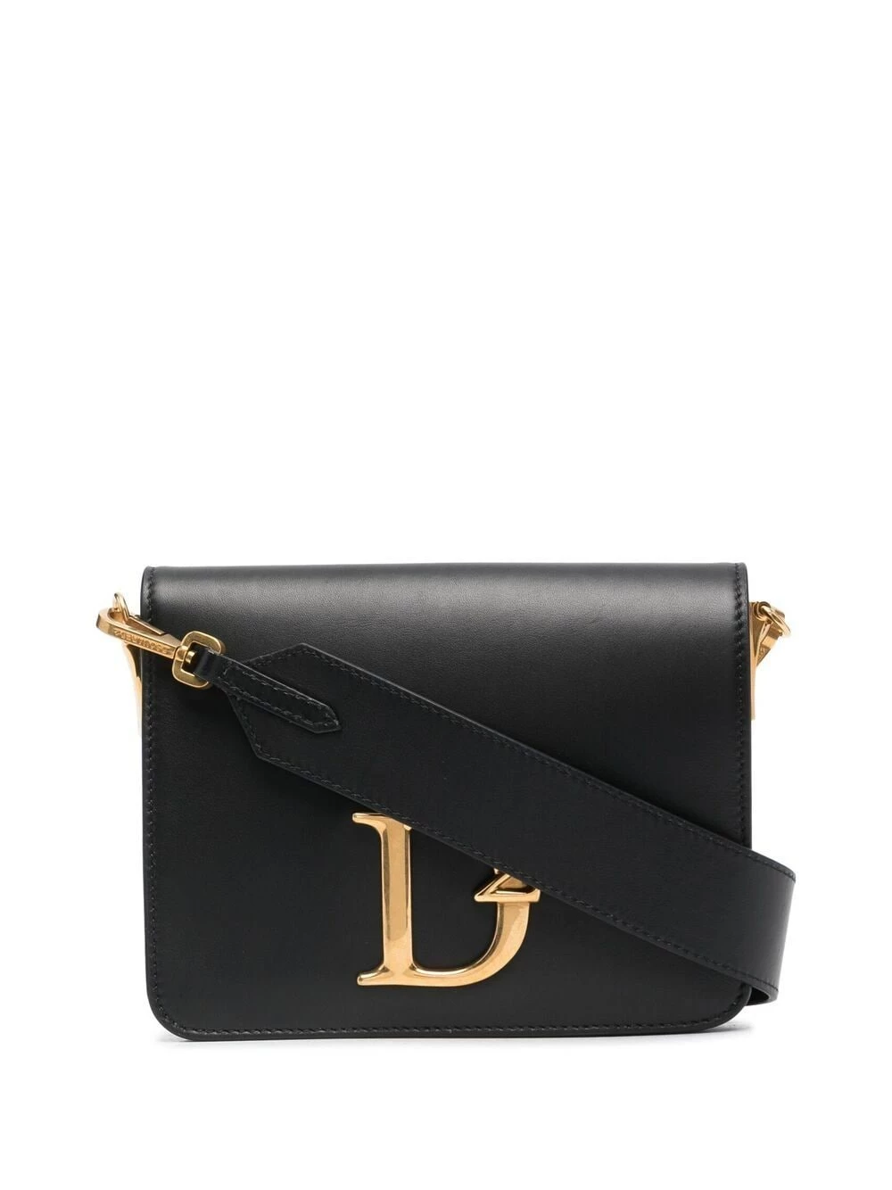 Plaque logo dorée, bride porté épaule détachable, dessus à rabat avec bouton pression, compartiment intérieur. Couleur : noir. Matière : cuir.
