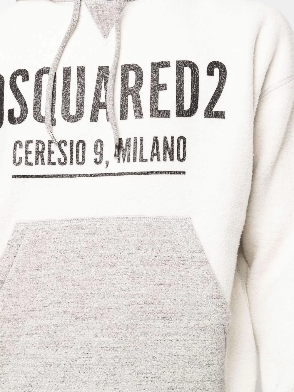 Logo imprimé sur le devant, modèle bicolore, capuche à lien de resserrage, poche plaquée sur le devant, manches longues, ourlet droit. Matière : coton.