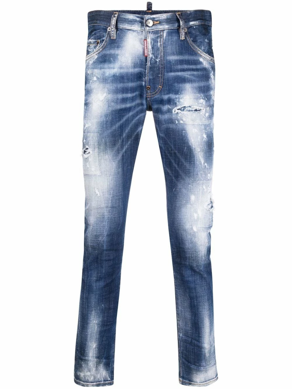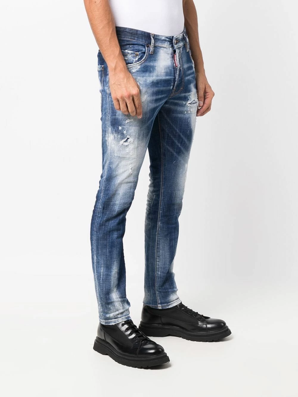 Denim délavé, effet délavé, passants de ceinture, fermeture à zip et boutons sur le devant, cinq poches classiques, coupe skinny.