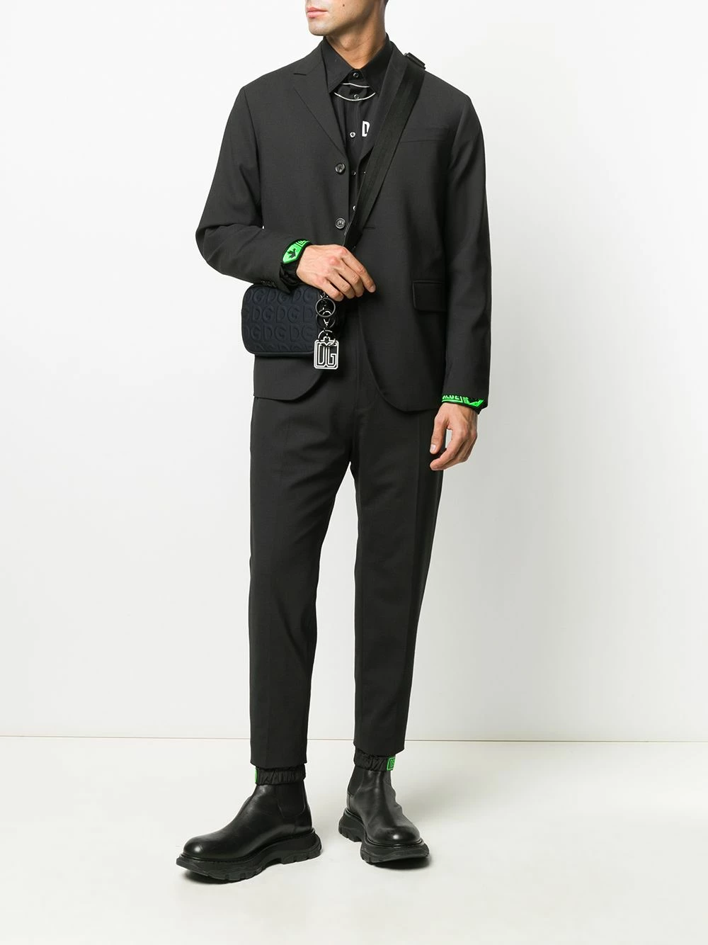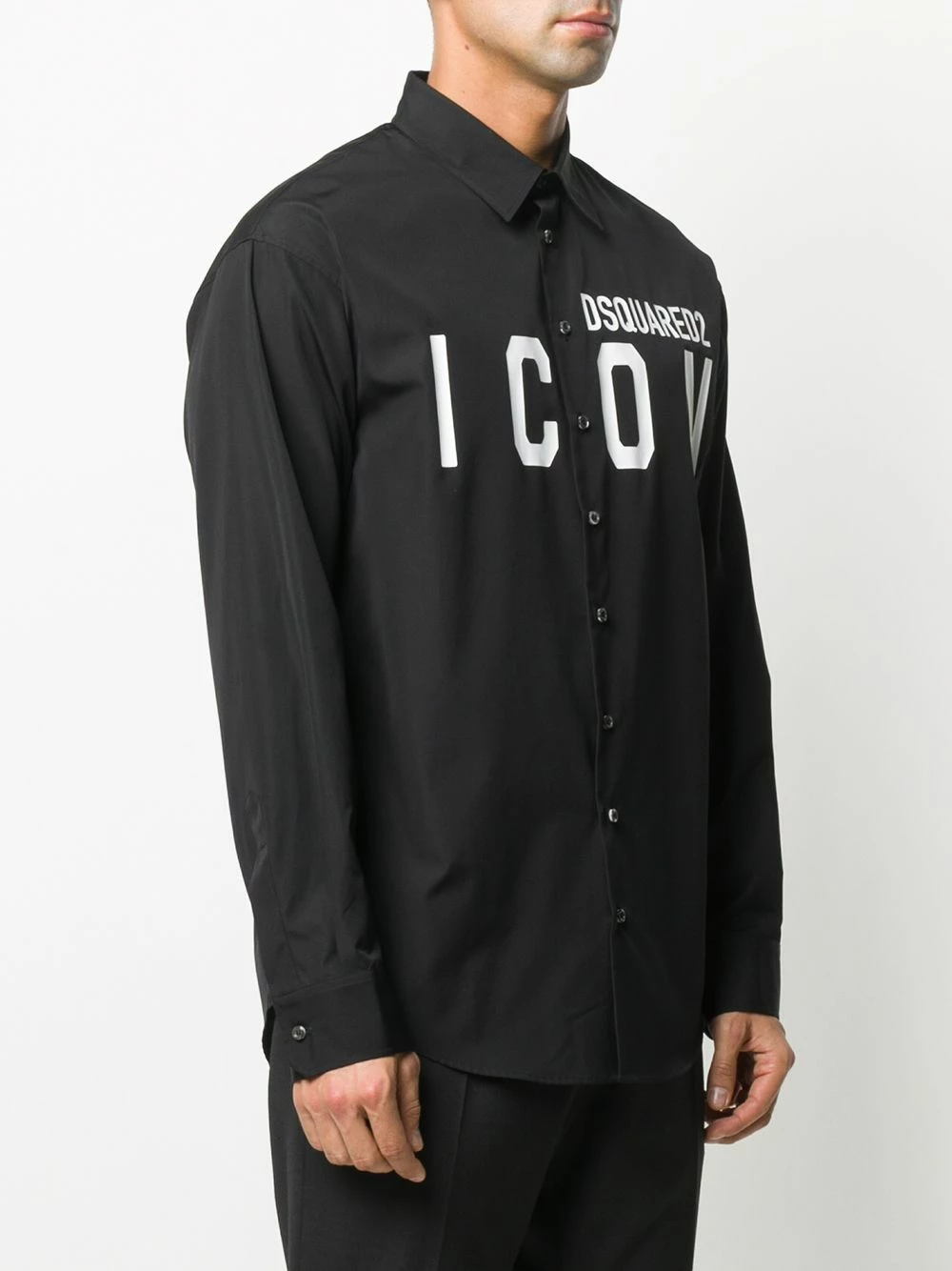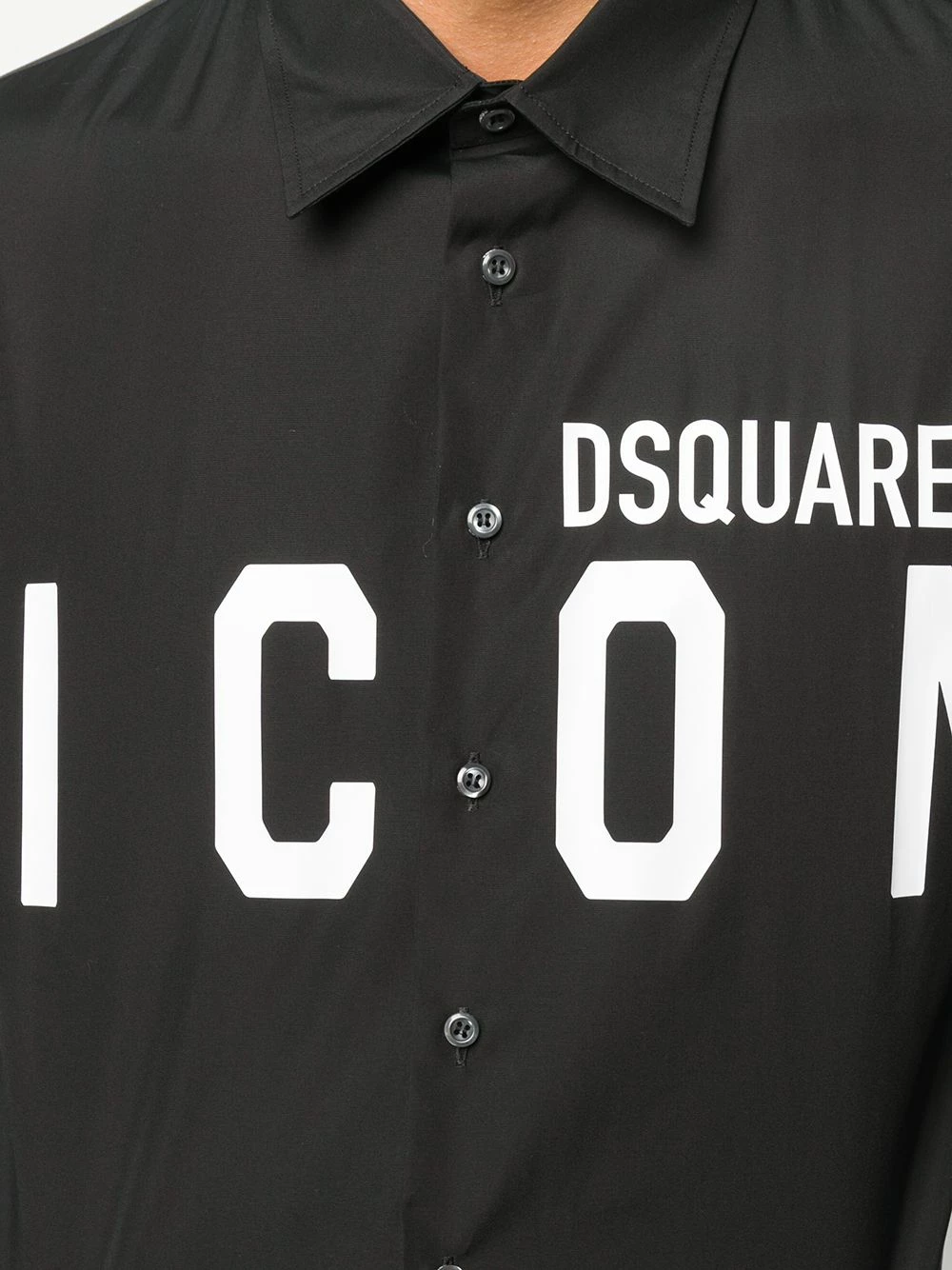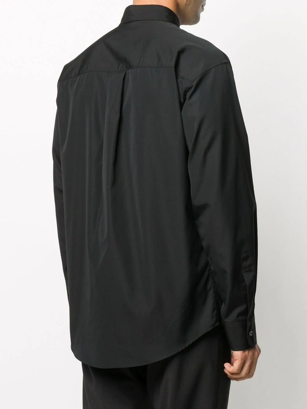 Logo imprimé sur le devant, col classique, manches à poignets boutonnés, boutonnière sur le devant. Couleur : noir. Matière : coton.