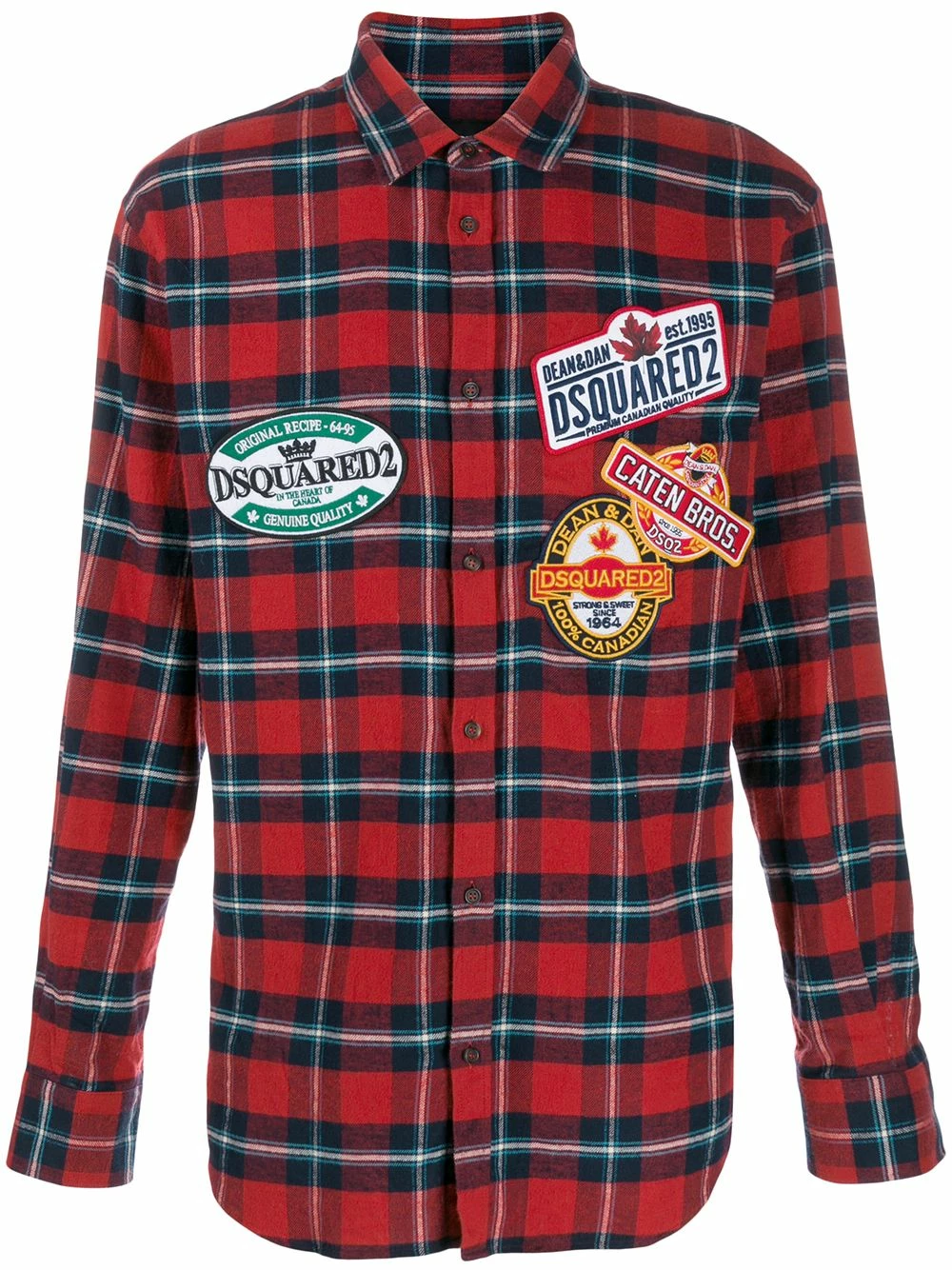 Chemise à carreaux en coton Dsquared2 avec col classique, boutonnière sur le devant, manches longues et ourlet incurvé.