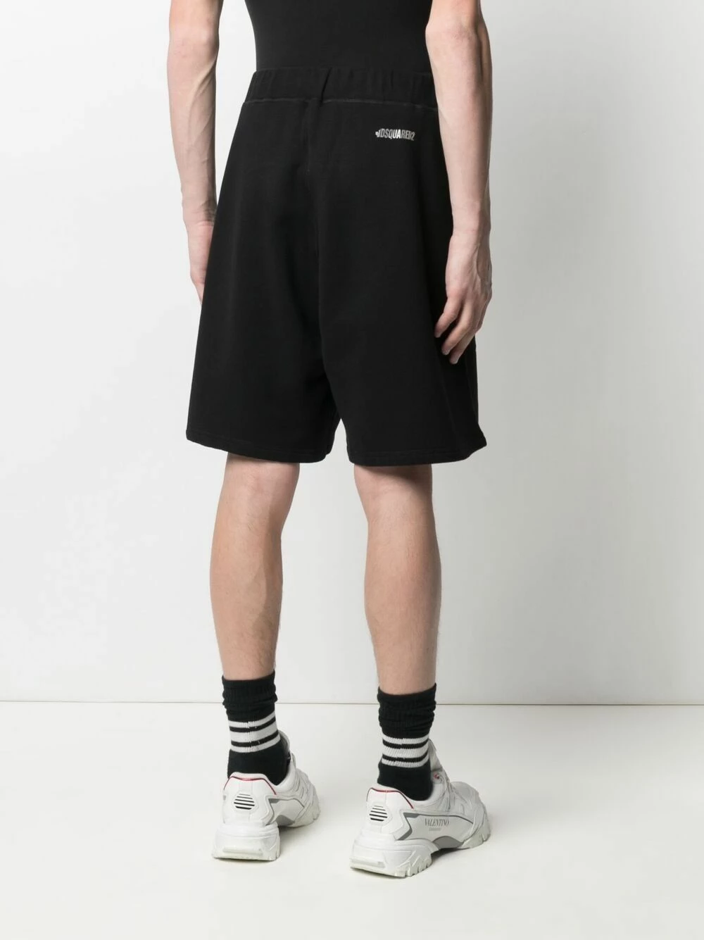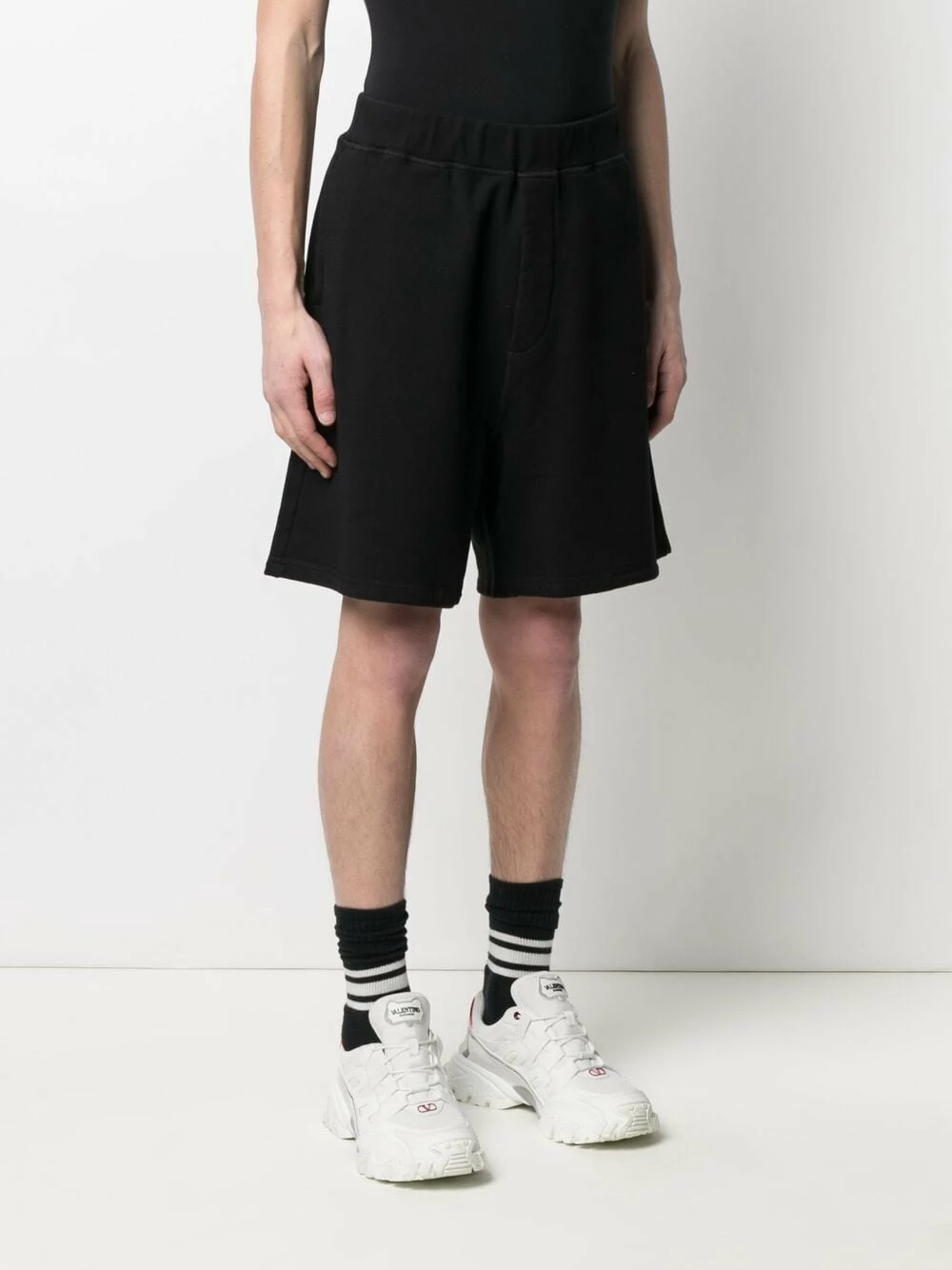 Appliqué logo, ceinture élastique, deux poches latérales plaquées, détails de coutures apparentes. Couleur : noir. Matière : coton.