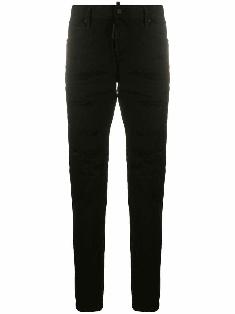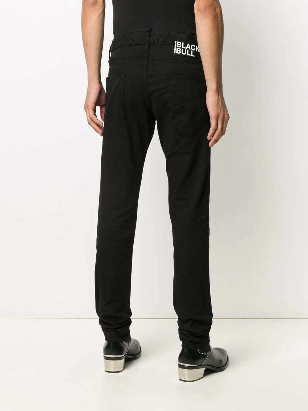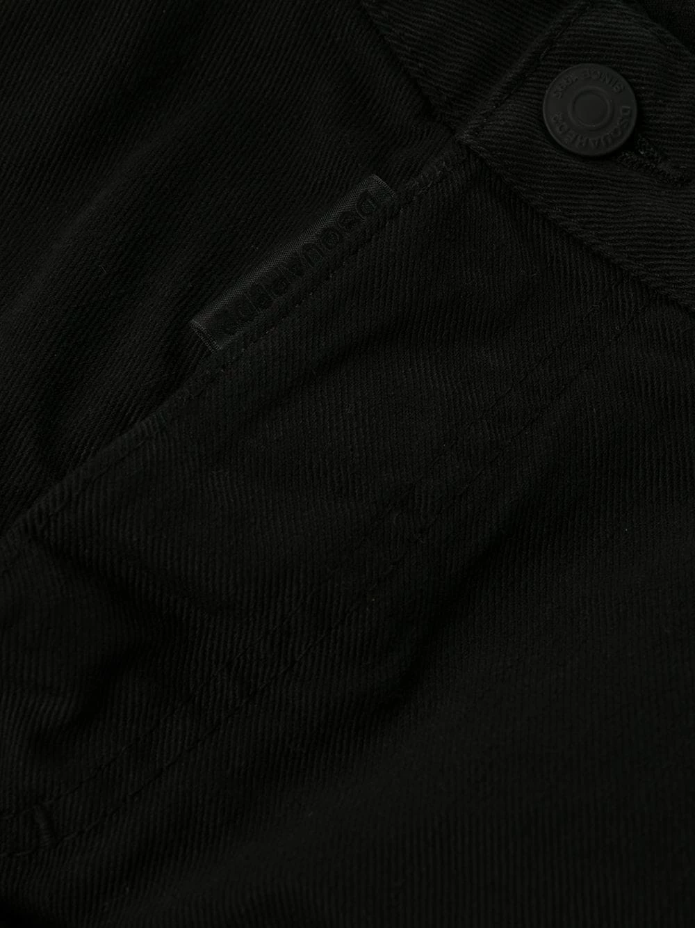 Fermeture boutonnée, passants de ceinture, 5 poches classiques, effet usé, patch logo sur l’arrière. Couleur : noir. Matière : coton.