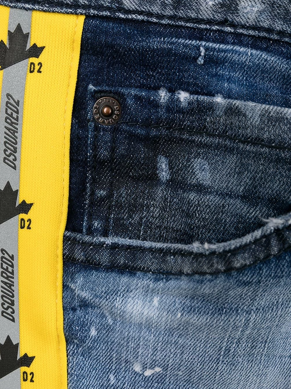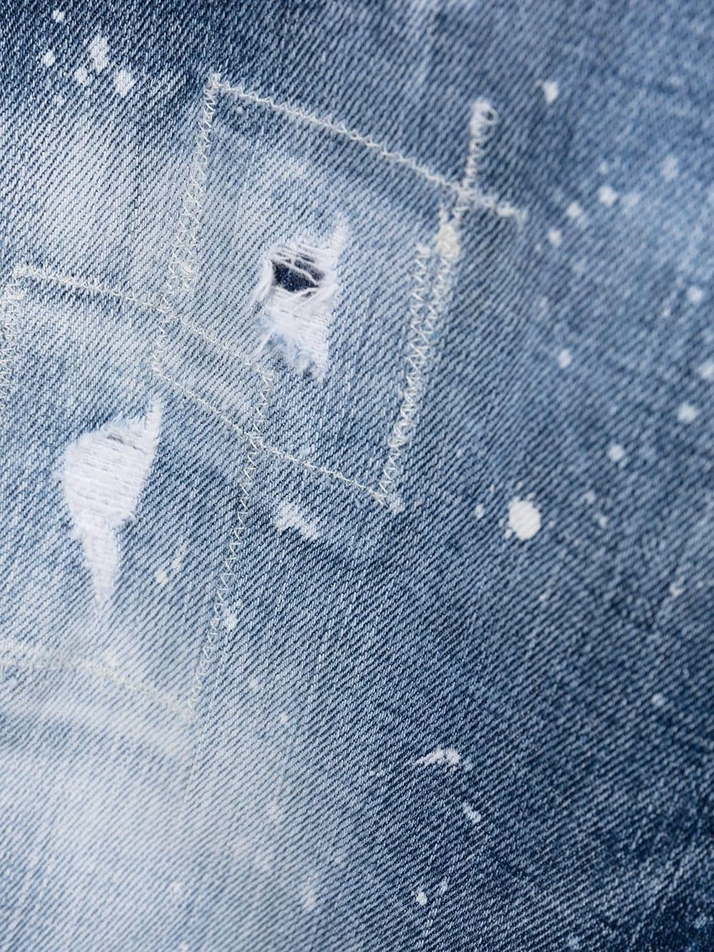 Finition à bande logo, effet usé, effet délavé, fermeture boutonnée, passants de ceinture, 5 poches classiques, coupe courte. Couleur : bleu.