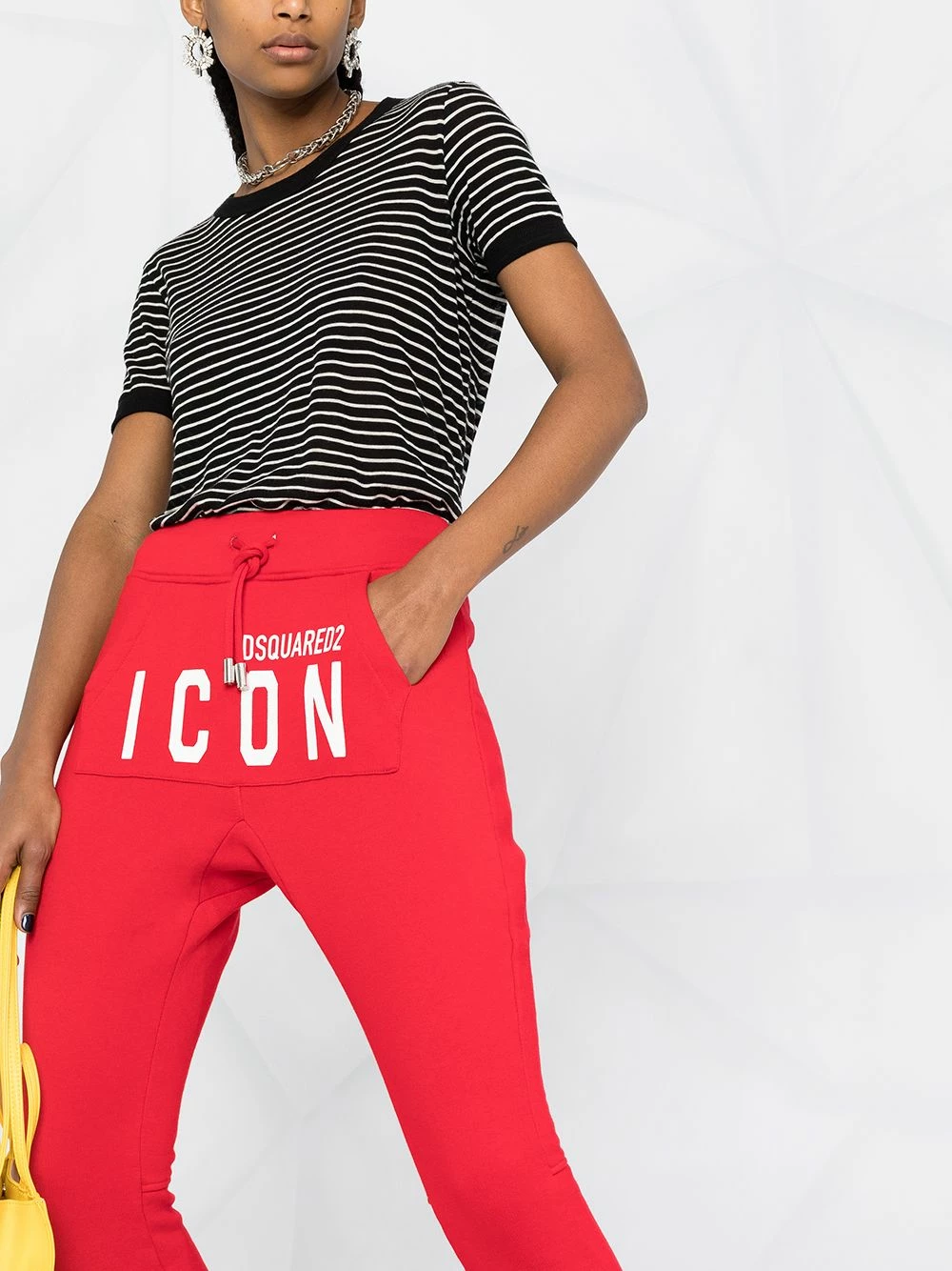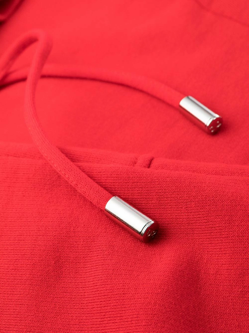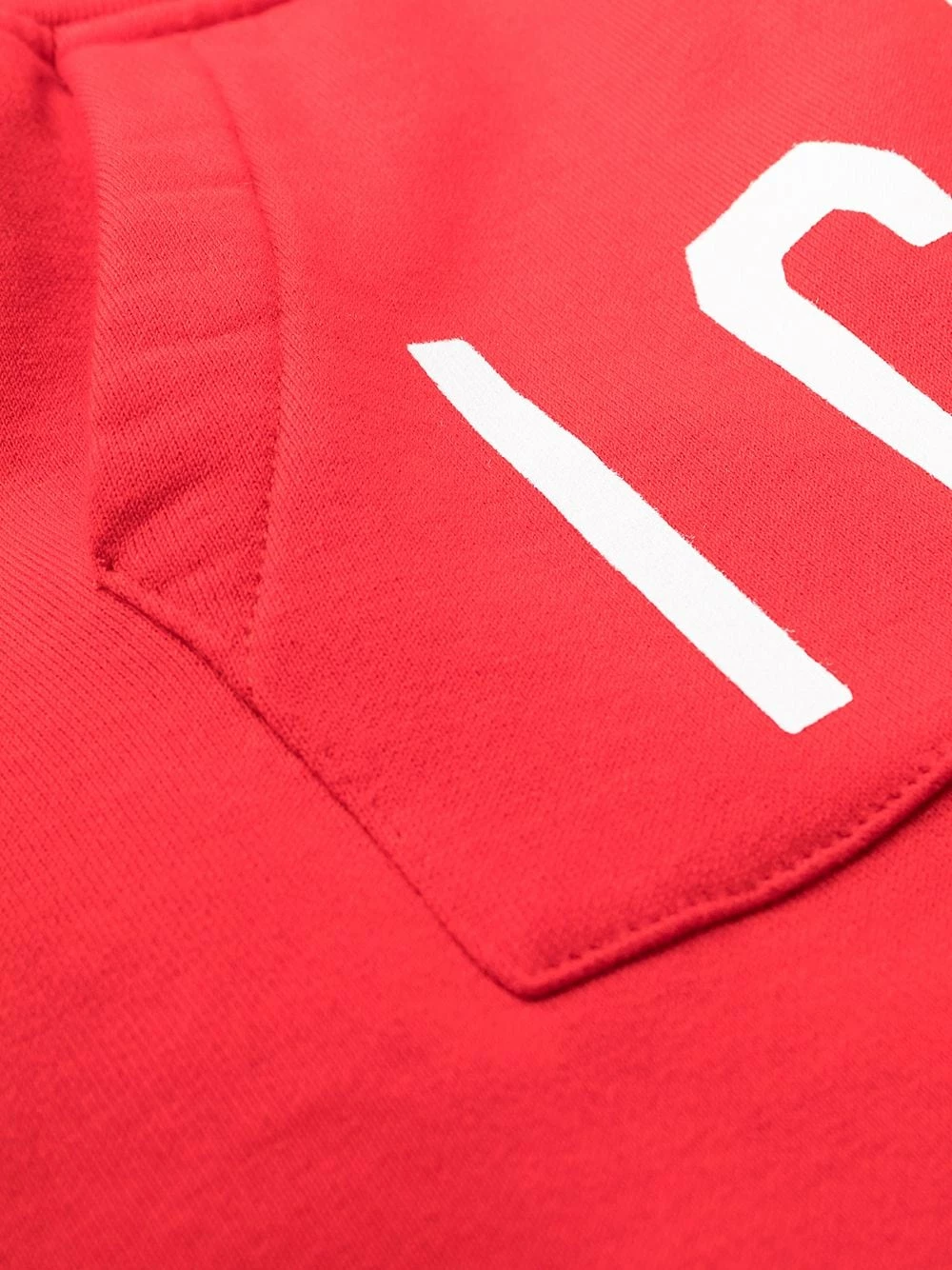 Slogan imprimé sur l’avant, coupe ajustée, ceinture élastique, lien de resserrage, deux poches à rabat. Couleur : rouge. Matière : coton.