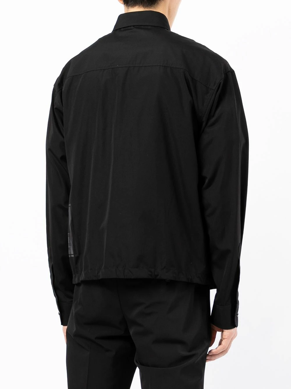 Col classique, boutonnière sur le devant, manches longues, poignets boutonnés, logo imprimé sur le côté, ourlet à lien de resserrage. Couleur : noir. Matière : coton.