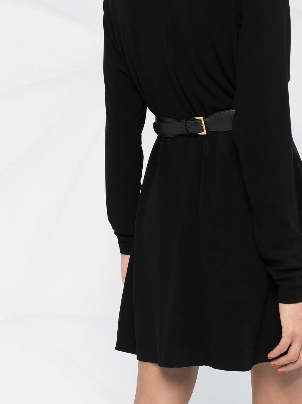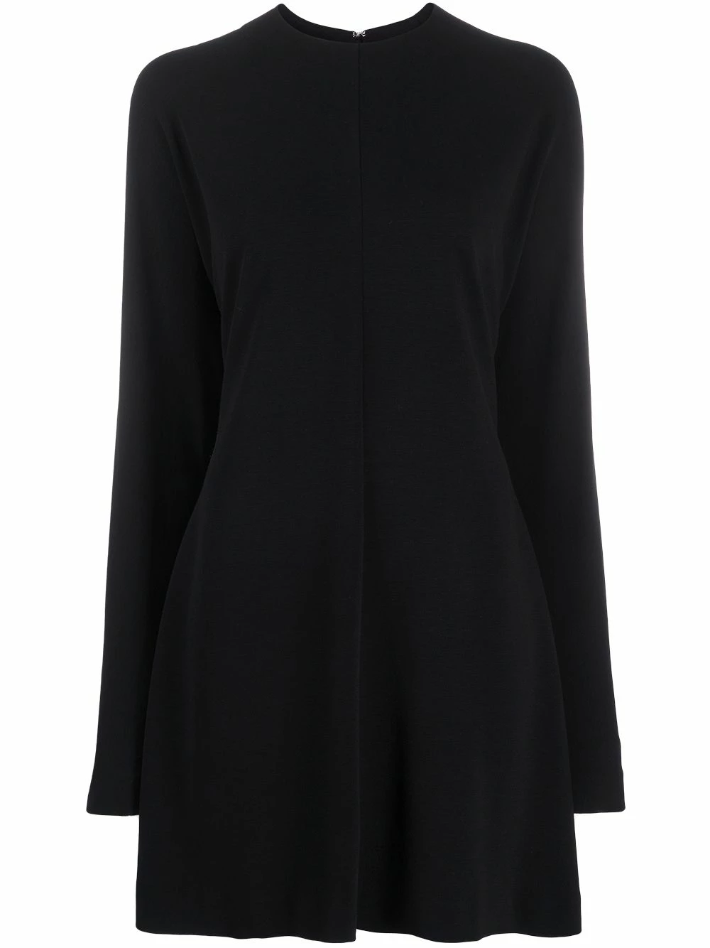 Encolure ronde, manches longues, deux poches latérales passepoilées, fermeture zippée à l’arrière. Couleur : noir.