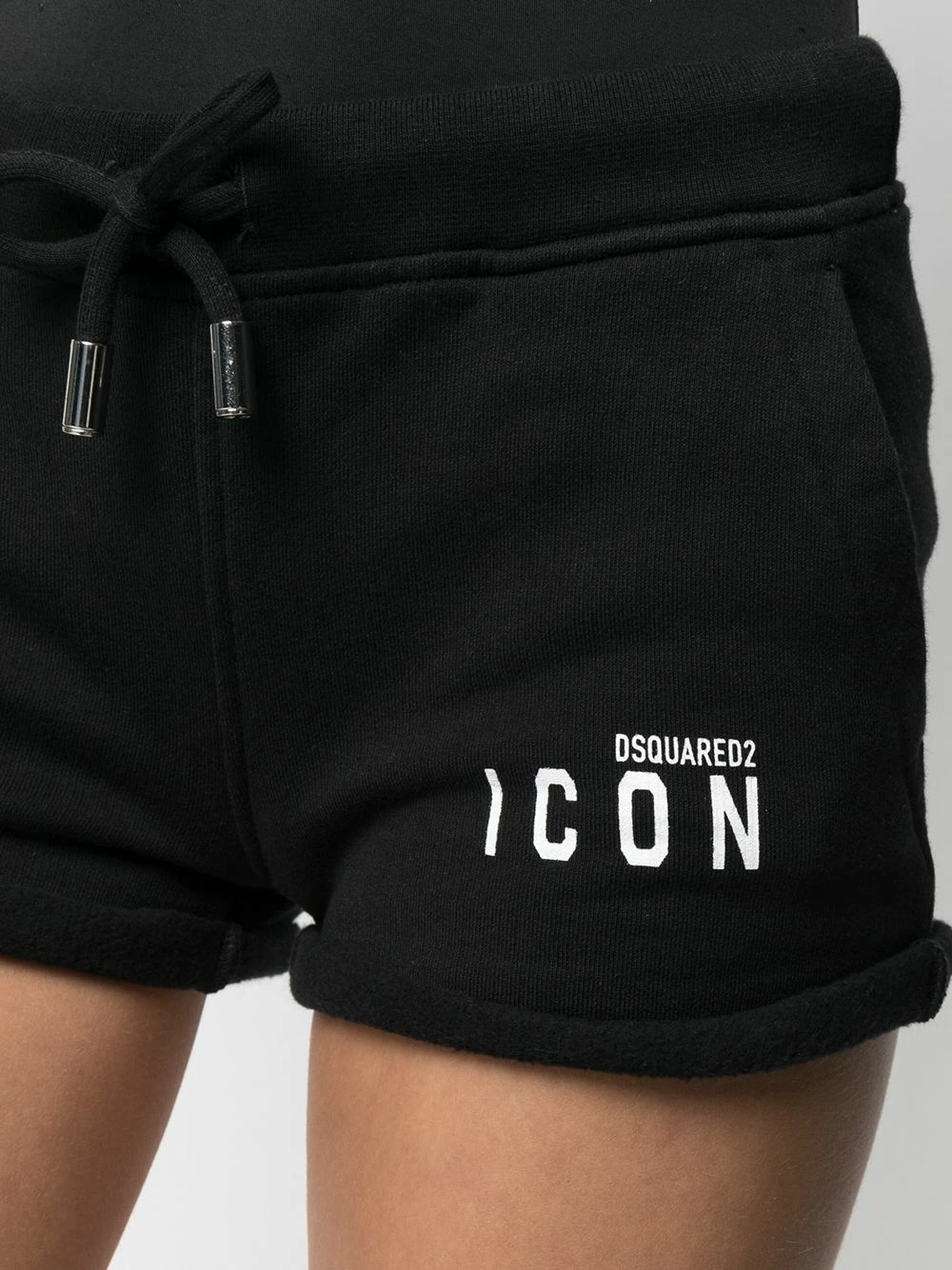 Logo imprimé sur le devant, lien de resserrage à la taille, deux poches latérales passepoilées, poignets retroussés. Couleur : noir. Matière : coton.
