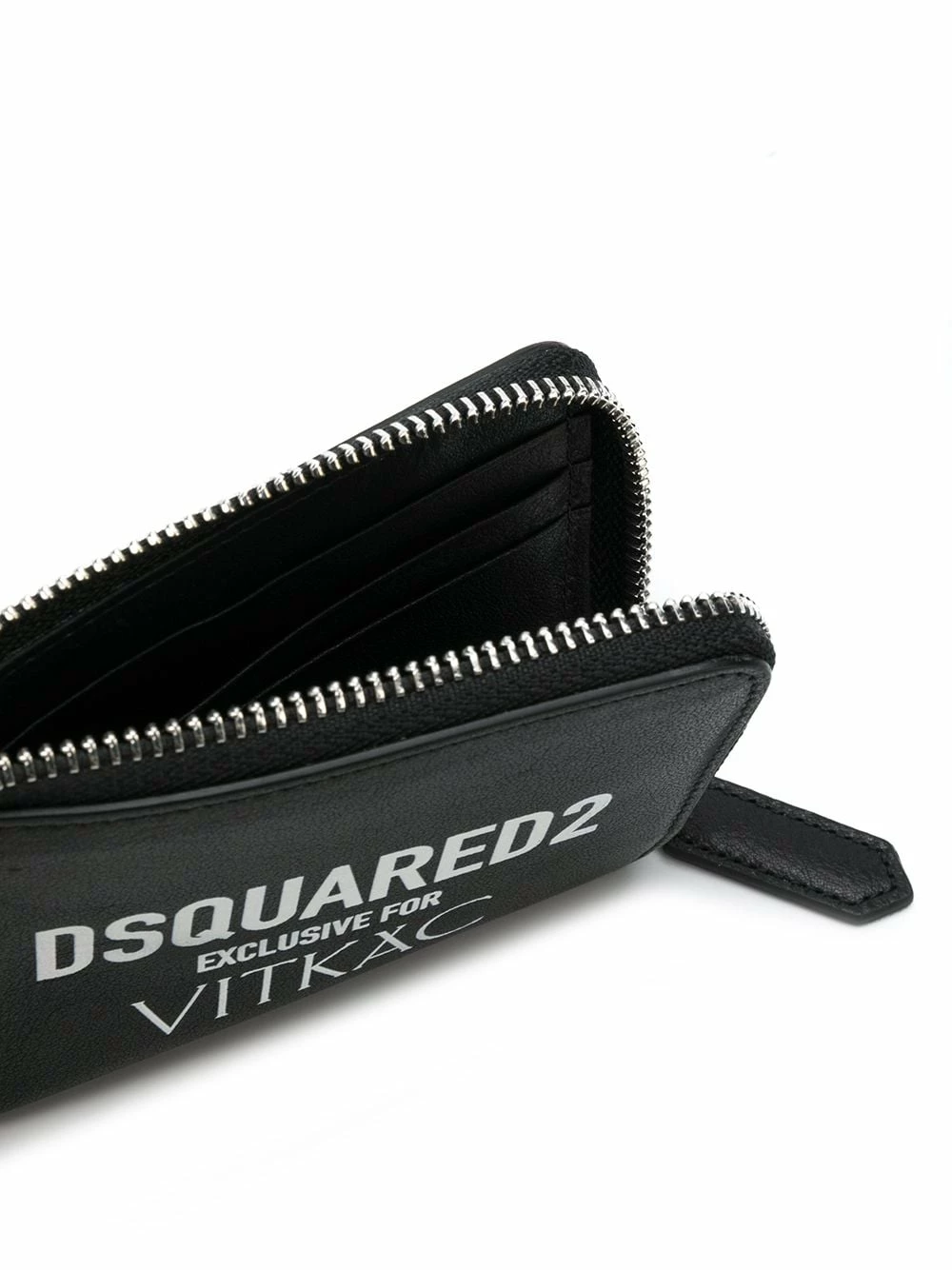 Casquette Exclusive for Vitkac en cuir de veau Dsquared2 avec logo imprimé sur le devant, un bracelet en maillons, fermeture zippée, compartiments porte-cartes intérieurs et détails argentés. Cette pièce est une exclusivité.