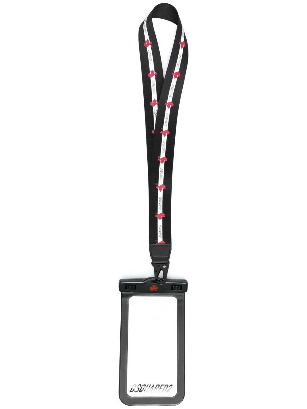 Bride à logo imprimé, modèle bicolore, bride porté autour du cou détachable, effet de transparence.
