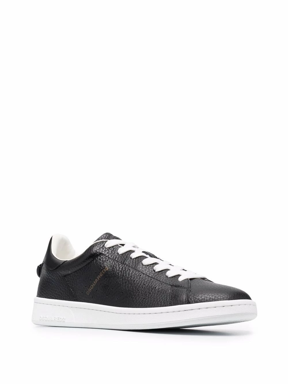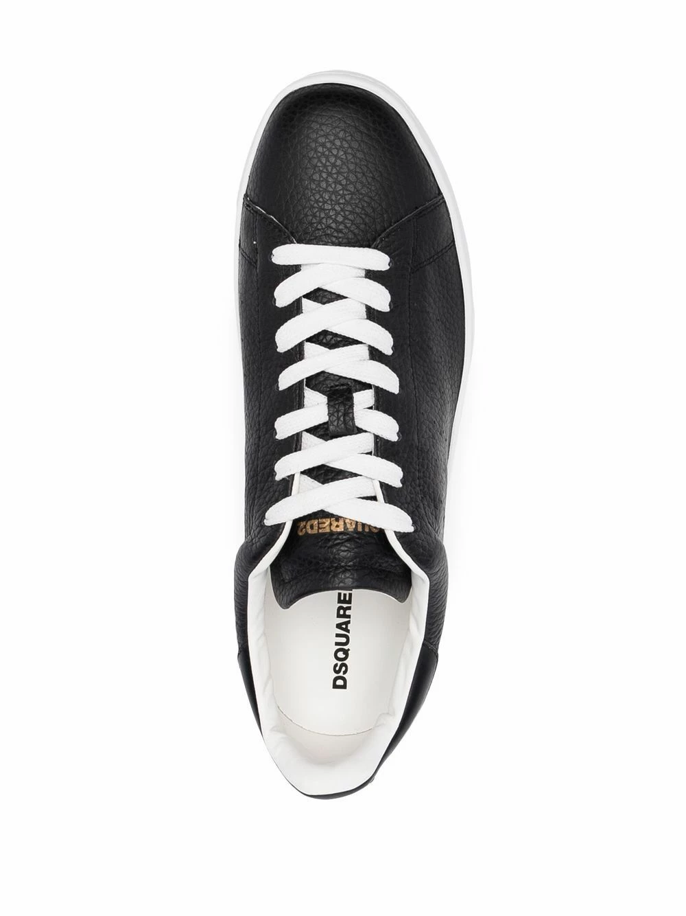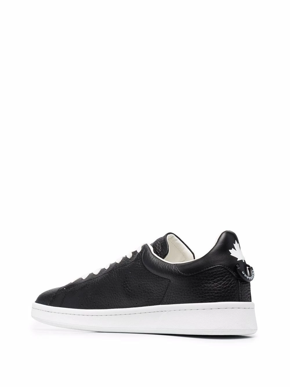 Languette à logo imprimé, fermeture à lacer sur le devant, bout rond, texture grainée, logo imprimé sur le côté, contrefort à logo, semelle plate en caoutchouc. Couleur : noir. Matière : cuir.