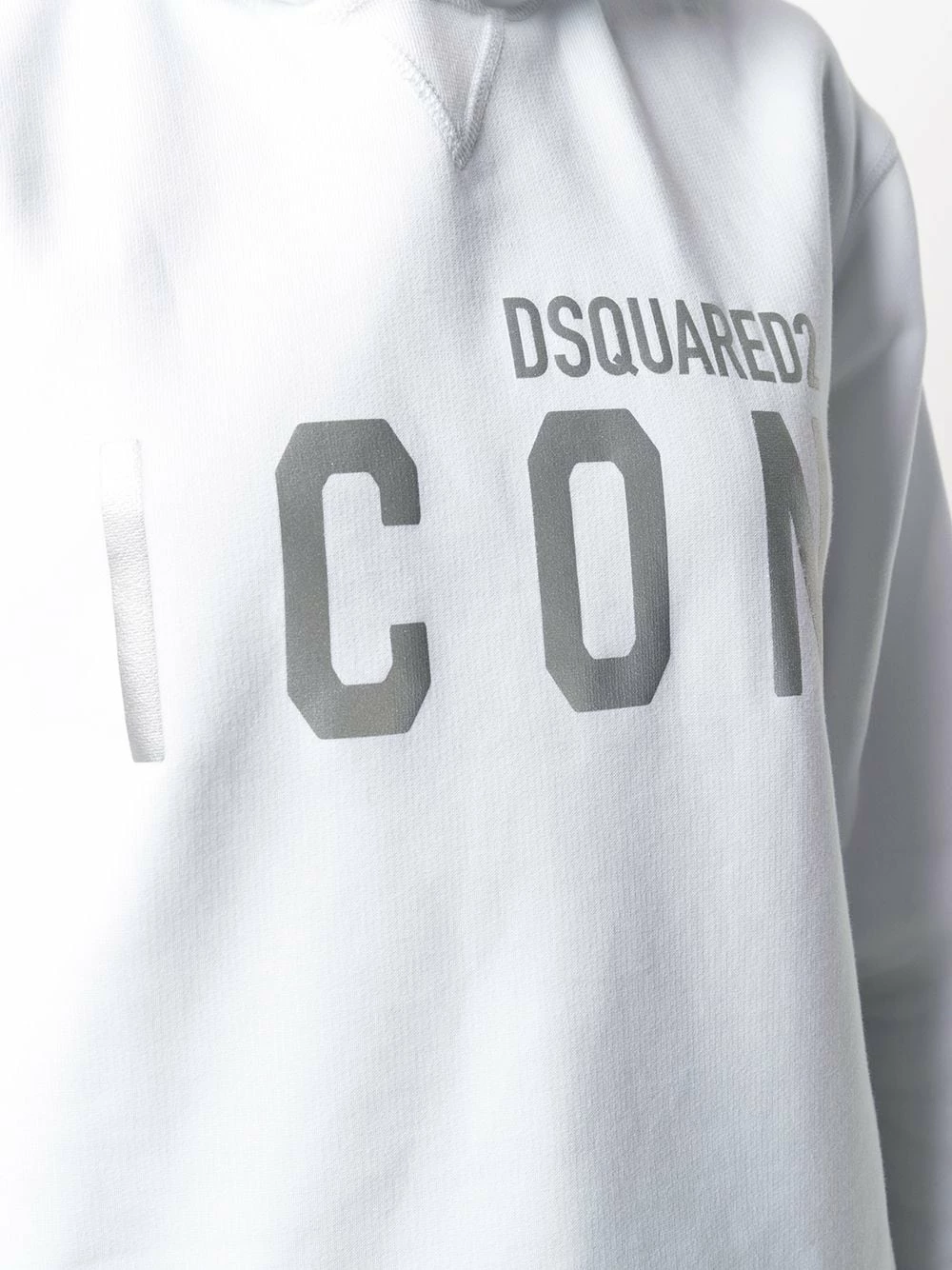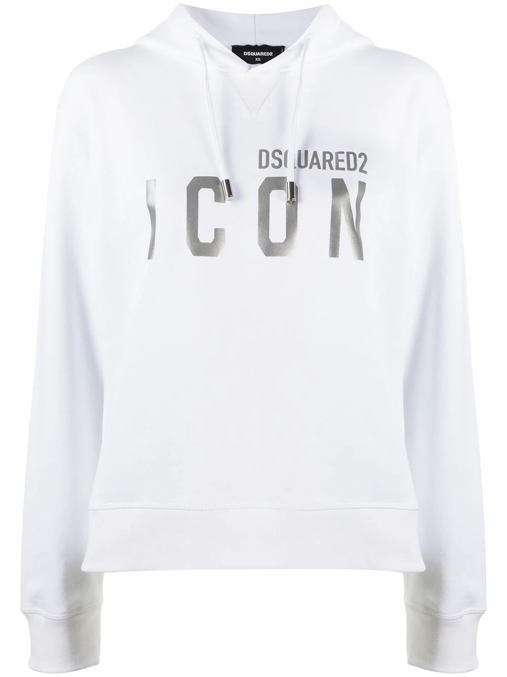 Tricot point jersey, logo imprimé sur le devant, capuche à lien de resserrage, manches longues, poignets élastiqués. Couleur : blanc.