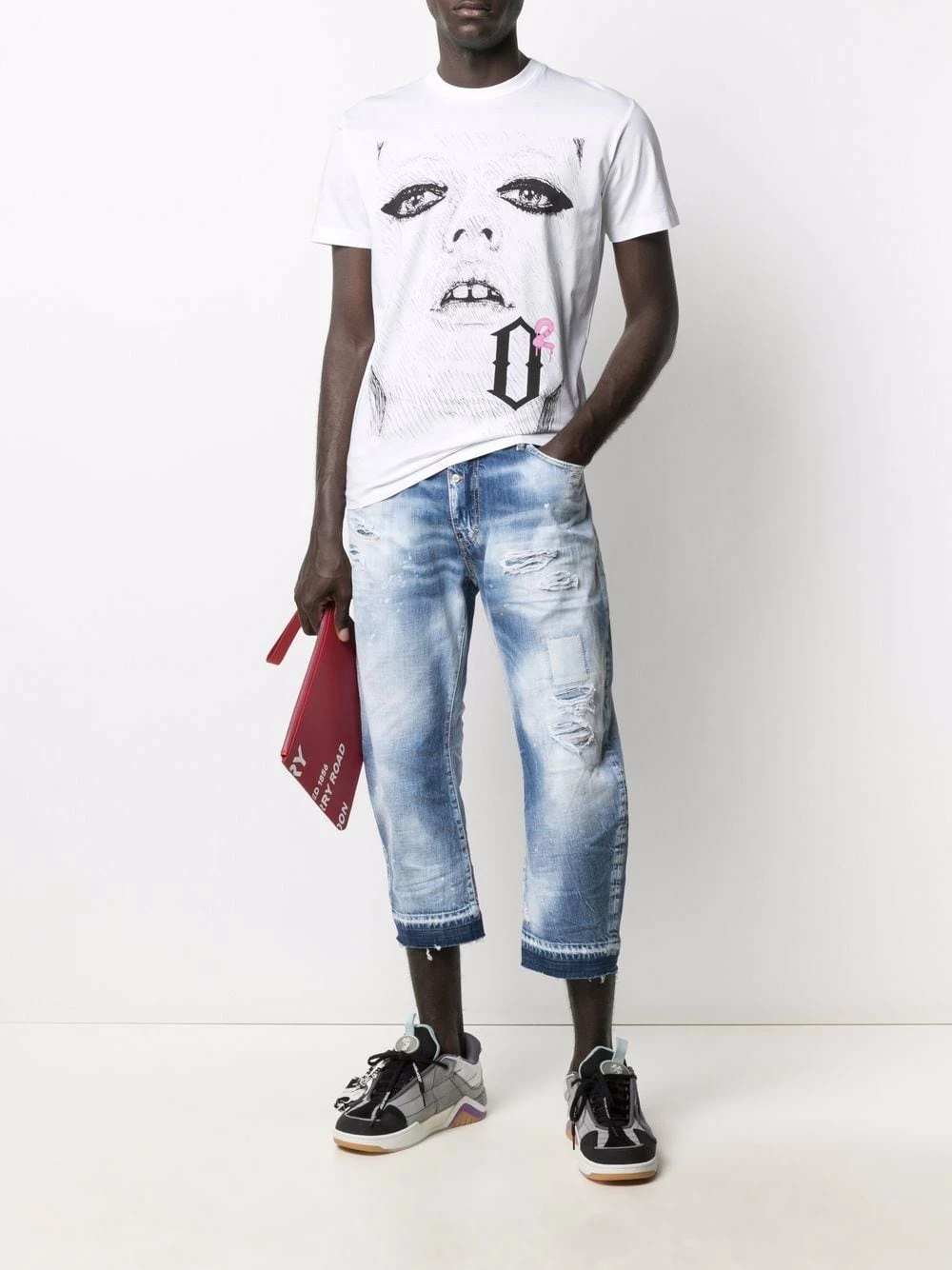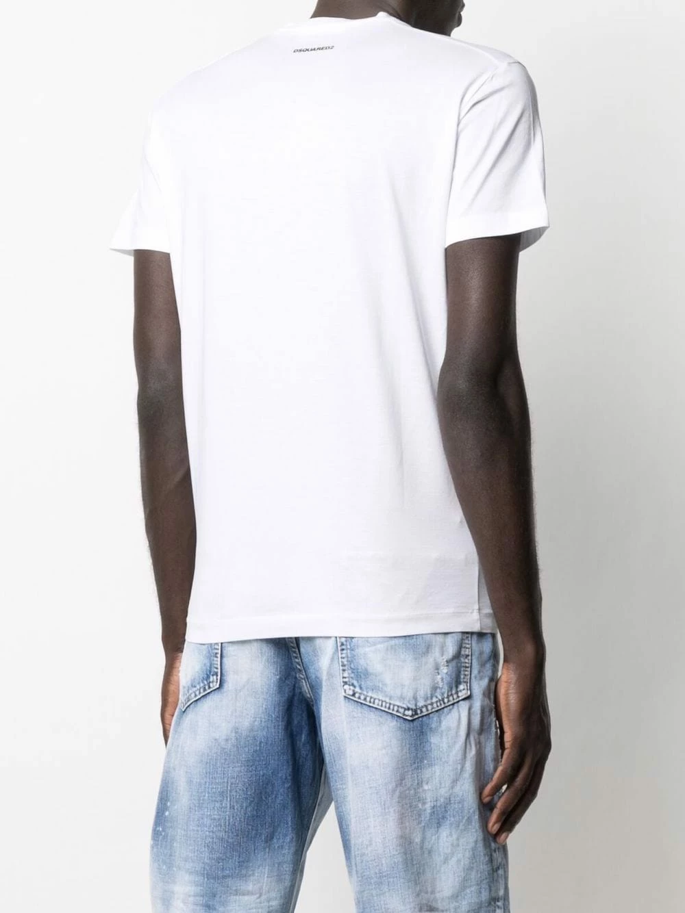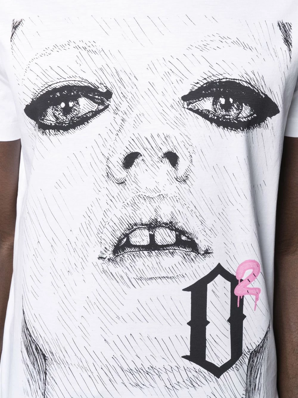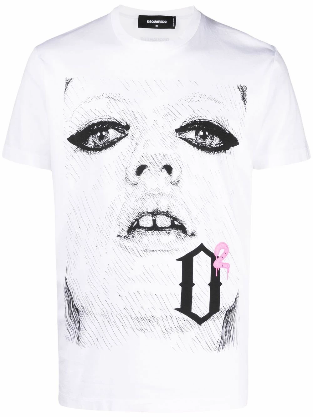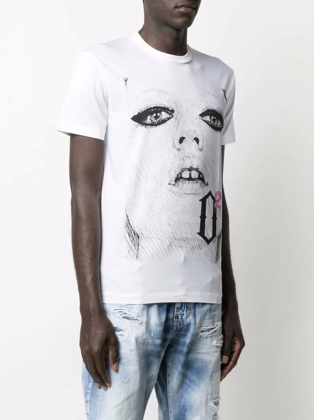 Imprimé graphique, encolure ronde, manches courtes, ourlet droit. Couleur : blanc. Matière : coton.