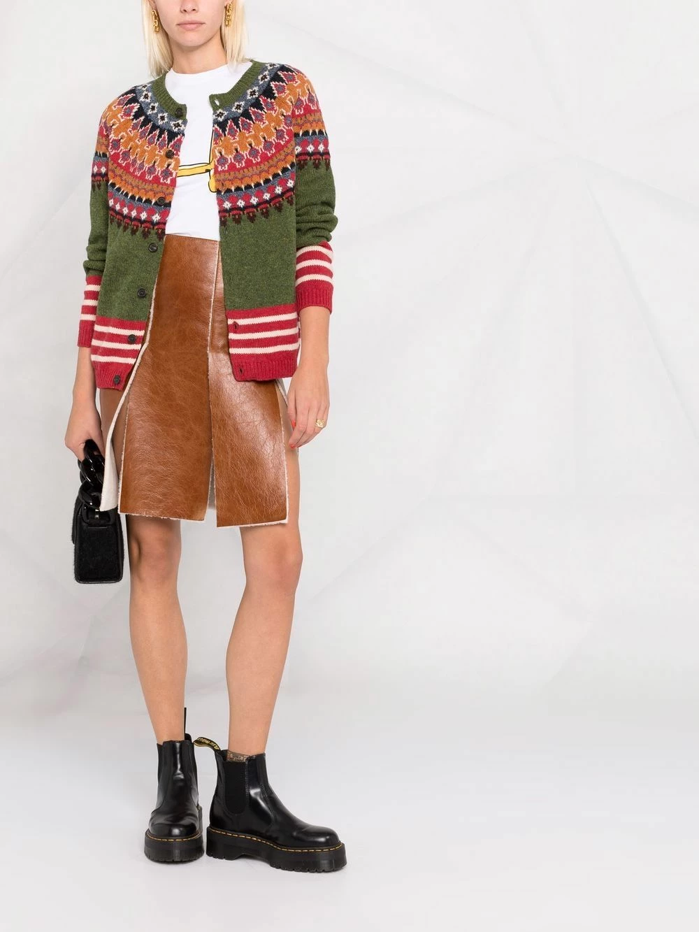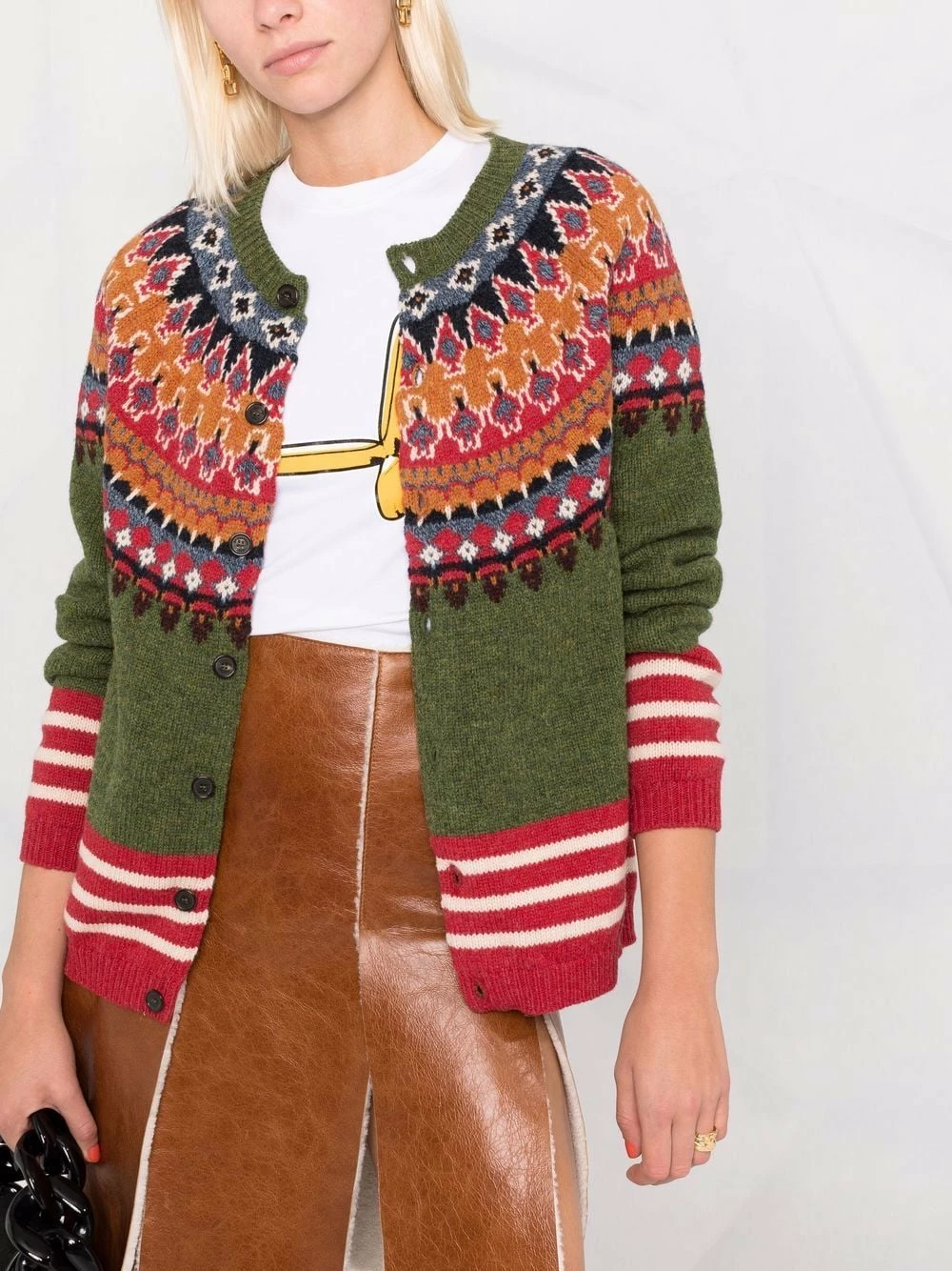 Encolure ronde, manches longues, boutonnière sur le devant, poignets nervurés, ourlet nervuré. Matière : laine.