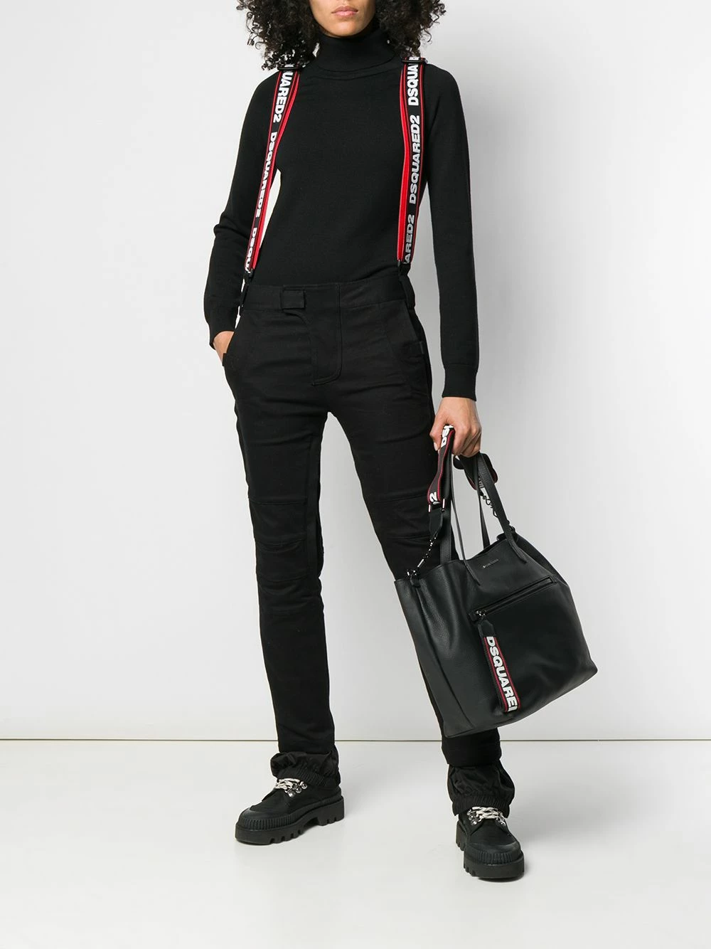 Pull Ski en laine Dsquared2 avec col roulé nervuré, manches longues, ourlet et poignets nervurés et coupe slim. Couleur : noir.