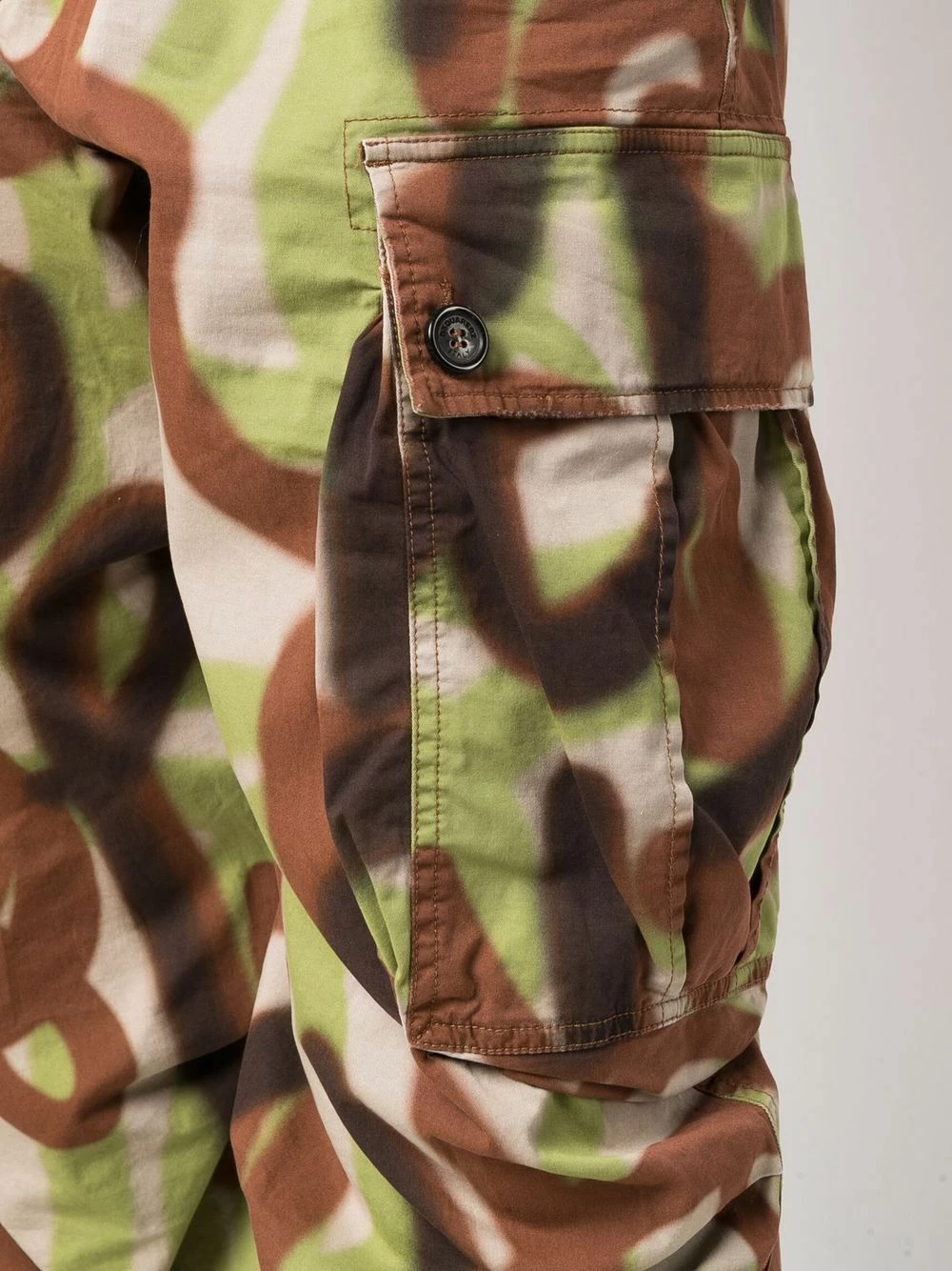 Fermeture à zip et boutons sur le devant, ceinture élastique, poches latérales kangourou, imprimé graffiti, bride cheville à scratch, coupe ample. Matière : coton.